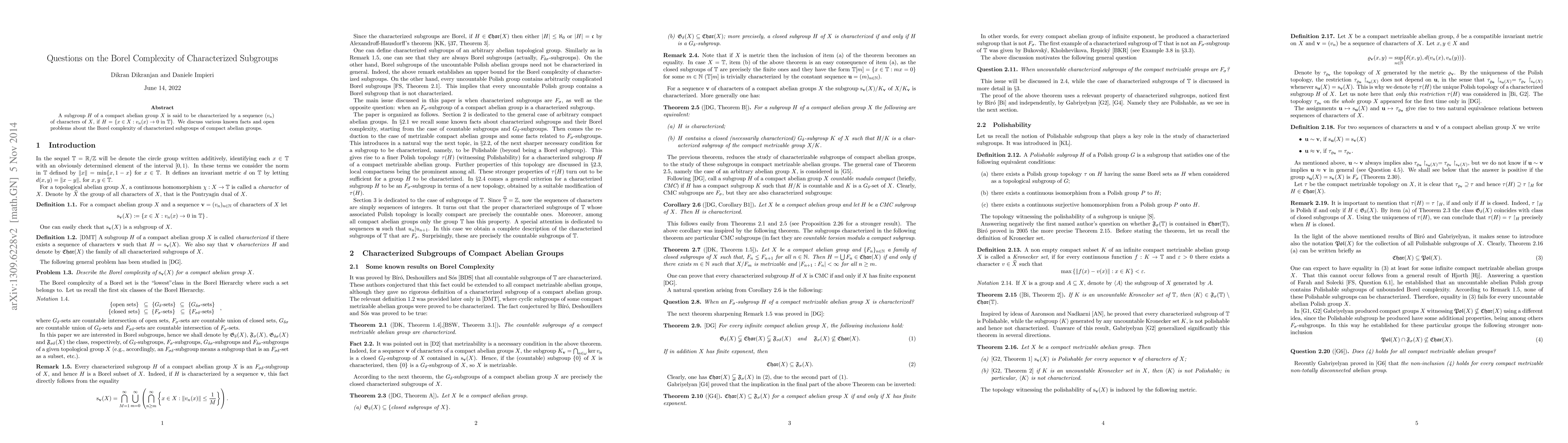 This paper explores the Borel complexity of characterized subgroups within compact abelian groups, posing several open questions inspired by the authors' upcoming work \cite{DI3}. The focus is on understanding the intricate structure and classification of these subgroups through the lens of Borel complexity.