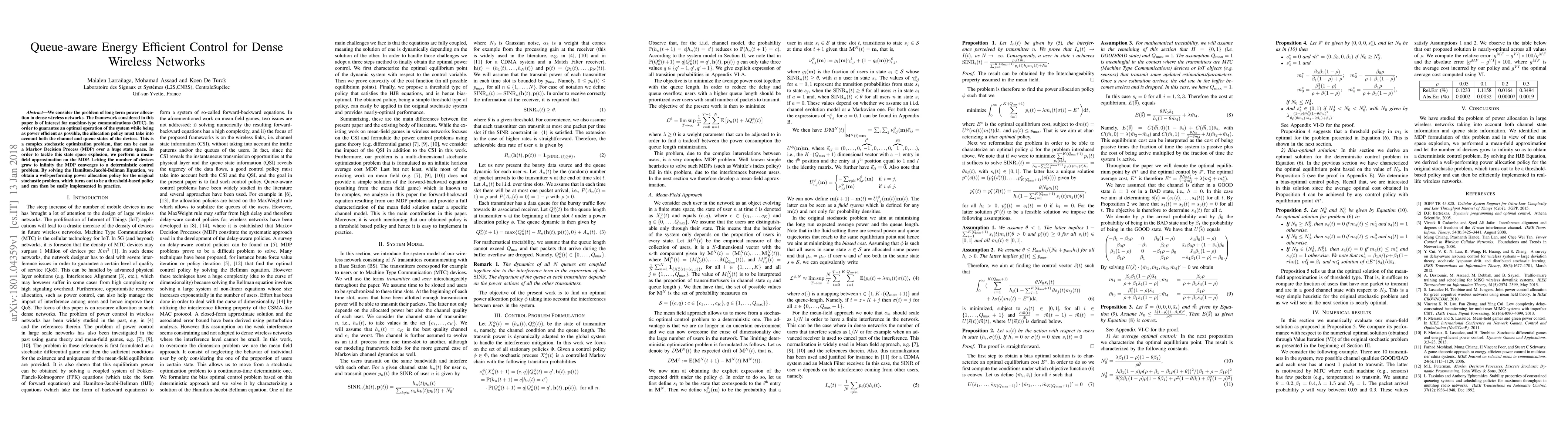 We consider the problem of long term power allocation in dense wireless networks. The framework considered in this paper is of interest for machine-type communications (MTC). In order to guarantee an optimal operation of the system while being as power efficient as possible, the allocation policy must take into account both the channel and queue states of the devices. This is a complex stochastic optimization problem, that can be cast as a Markov Decision Process (MDP) over a huge state space. In order to tackle this state space explosion, we perform a mean-field approximation on the MDP. Letting the number of devices grow to infinity the MDP converges to a deterministic control problem. By solving the Hamilton-Jacobi-Bellman Equation, we obtain a well-performing power allocation policy for the original stochastic problem, which turns out to be a threshold-based policy and can then be easily implemented in practice.