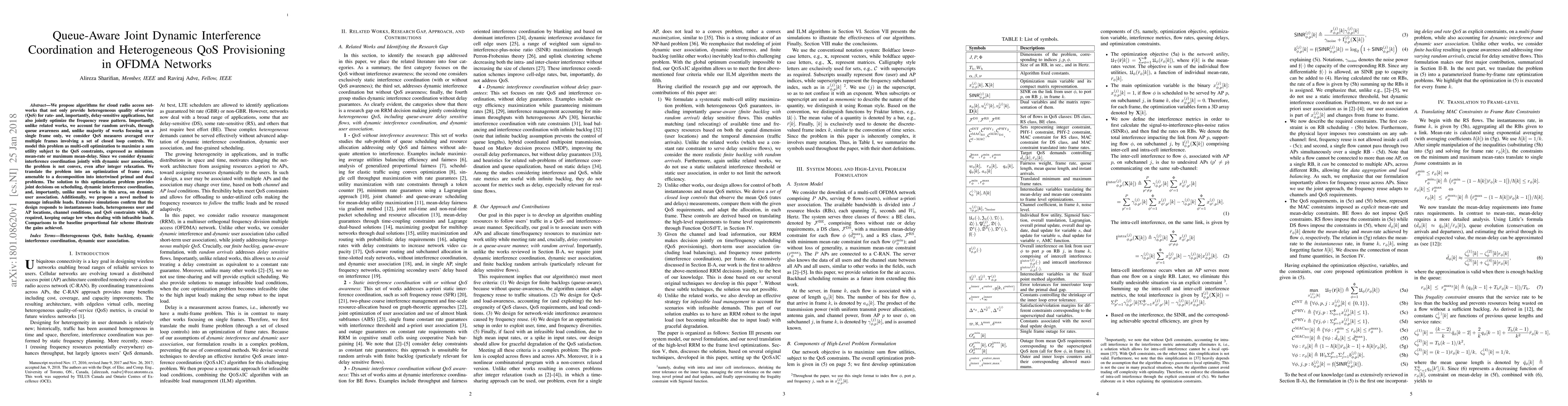 This paper proposes algorithms for cloud radio access networks to optimize frequency reuse and provide heterogeneous QoS for delay-sensitive applications, accounting for random arrivals and managing QoS over multiple frames. The solution involves dynamic interference coordination, scheduling, and user association, and includes a method for handling infeasible loads, demonstrating significant performance improvements over baseline schemes.