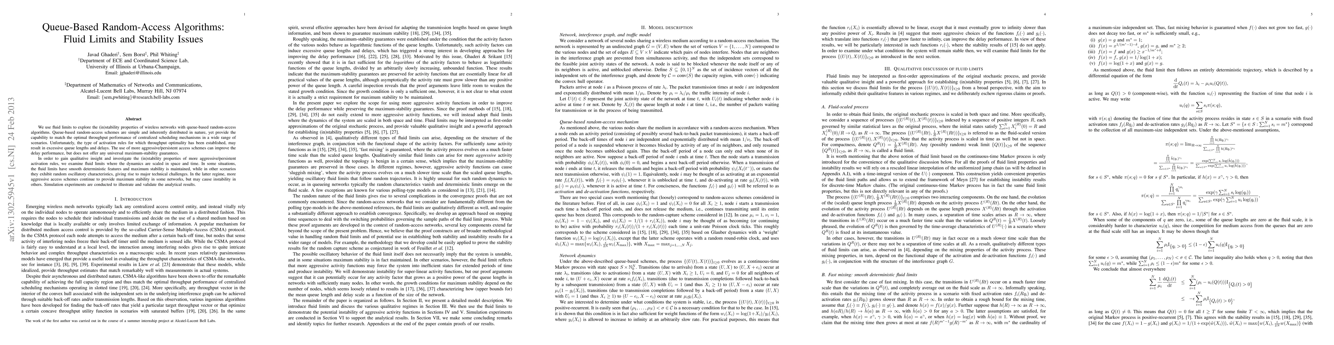 This paper investigates the stability properties of wireless networks using queue-based random-access algorithms through fluid limits. It finds that while aggressive access schemes can improve delay, they lack universal stability guarantees, leading to both stable and unstable scenarios depending on network dynamics.
