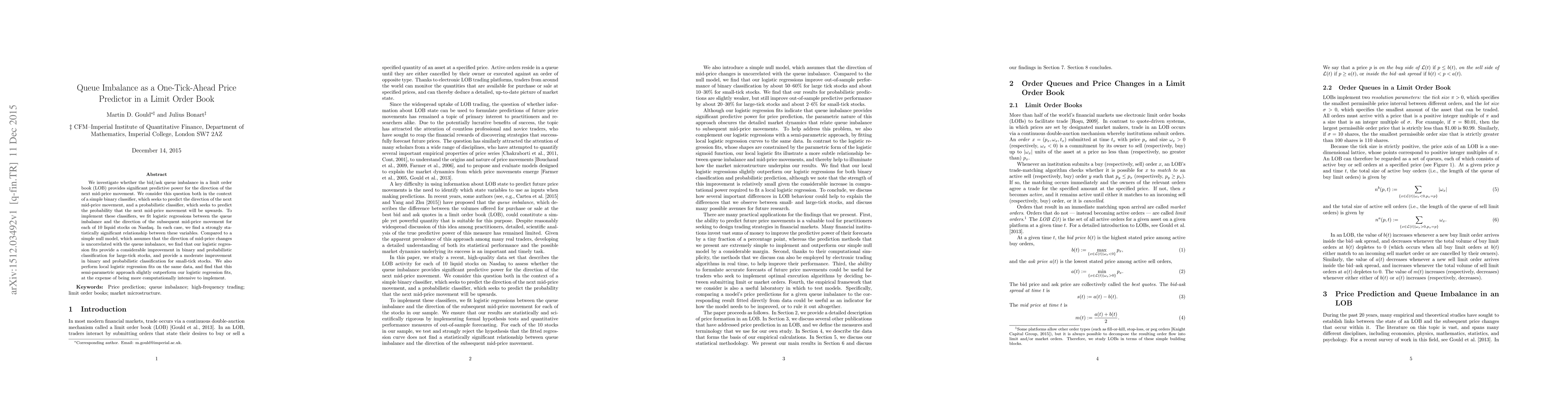 A study found that bid-ask queue imbalance in limit order books can predict mid-price movement direction with high accuracy, providing an improvement over a null model for large-tick stocks.
