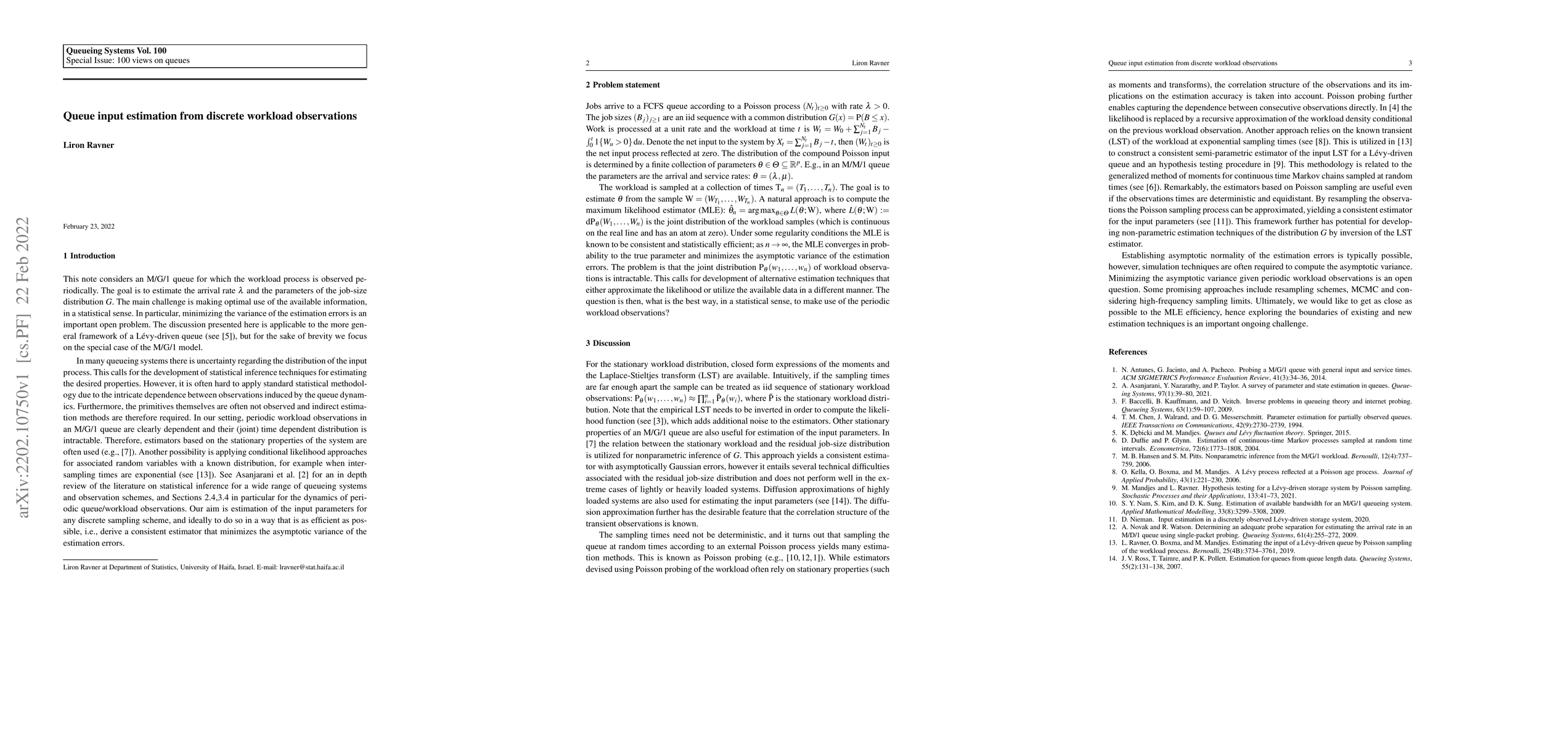 This research paper investigates how to accurately estimate queue input parameters from periodic workload observations, aiming to minimize estimation errors.