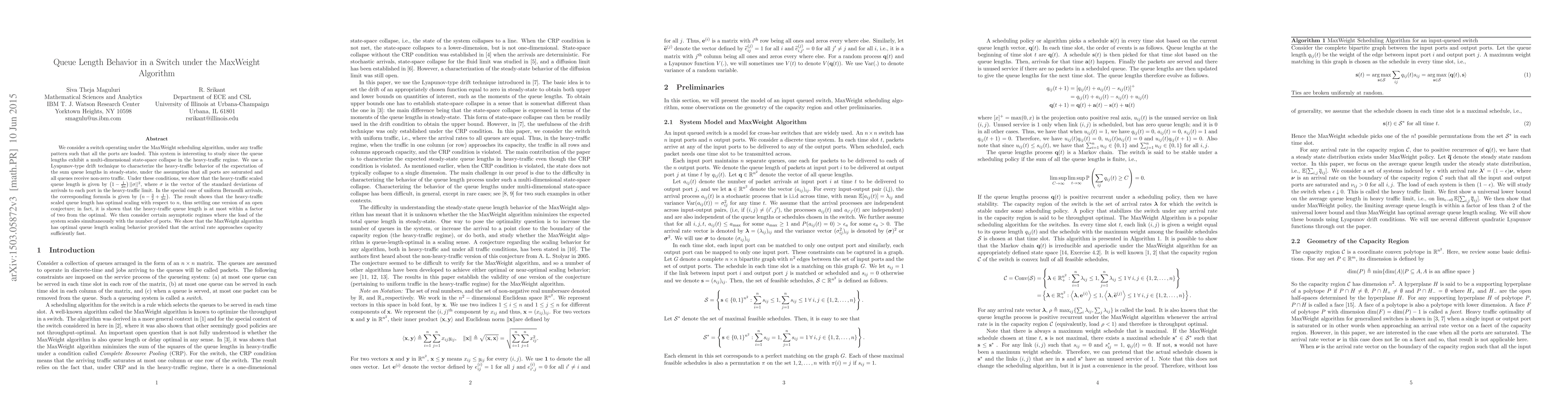 We consider a switch operating under the MaxWeight scheduling algorithm, under any traffic pattern such that all the ports are loaded. This system is interesting to study since the queue lengths exhibit a multi-dimensional state-space collapse in the heavy-traffic regime. We use a Lyapunov-type drift technique to characterize the heavy-traffic behavior of the expectation of the sum queue lengths in steady-state, under the assumption that all ports are saturated and all queues receive non-zero traffic. Under these conditions, we show that the heavy-traffic scaled queue length is given by $\left(1-\frac{1}{2n}\right)||\sigma||^2$, where $\sigma$ is the vector of the standard deviations of arrivals to each port in the heavy-traffic limit. In the special case of uniform Bernoulli arrivals, the corresponding formula is given by $\left(n-\frac{3}{2}+\frac{1}{2n}\right)$. The result shows that the heavy-traffic scaled queue length has optimal scaling with respect to $n,$ thus settling one version of an open conjecture; in fact, it is shown that the heavy-traffic queue length is at most within a factor of two from the optimal. We then consider certain asymptotic regimes where the load of the system scales simultaneously with the number of ports. We show that the MaxWeight algorithm has optimal queue length scaling behavior provided that the arrival rate approaches capacity sufficiently fast.