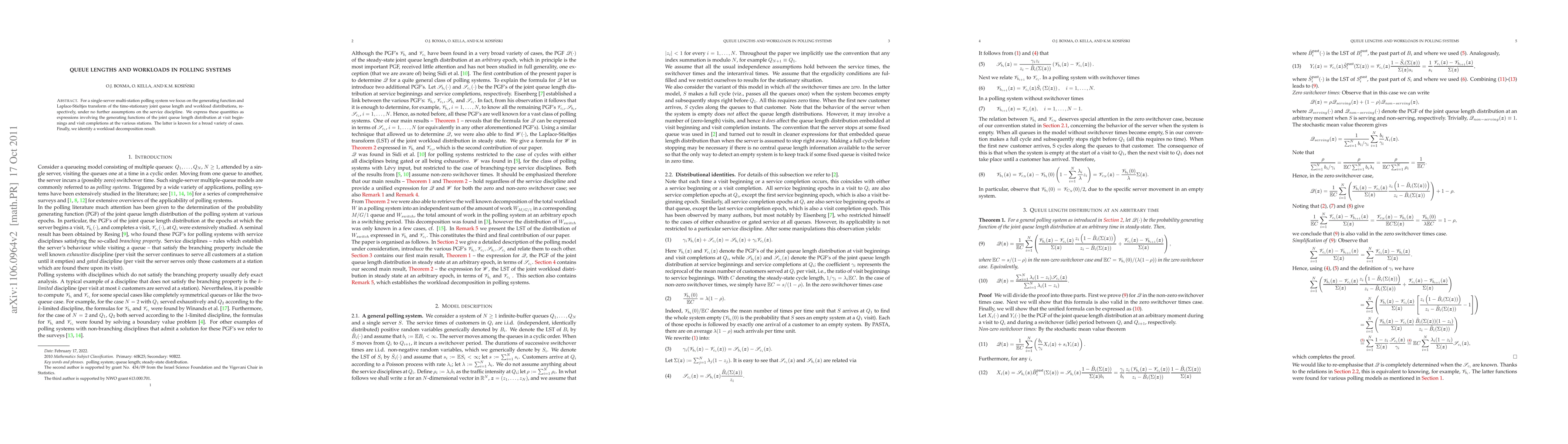 We consider a polling system: a queueing system of $N\ge 1$ queues with Poisson arrivals $Q_1,...,Q_N$ visited in a cyclic order (with or without switchover times) by a single server. For this system we derive the probability generating function $\mathscr Q(\cdot)$ of the joint queue length distribution at an arbitrary epoch in a stationary cycle, under no assumptions on service disciplines. We also derive the Laplace-Stieltjes transform $\mathscr W(\cdot)$ of the joint workload distribution at an arbitrary epoch. We express $\mathscr Q$ and $\mathscr W$ in the probability generating functions of the joint queue length distribution at visit beginnings, ${\mathscr V}_{b_i}(\cdot)$, and visit completions, ${\mathscr V}_{c_i}(\cdot)$, at $Q_i$, $i=1,...,N$. It is well known that ${\mathscr V}_{b_i}$ and ${\mathscr V}_{c_i}$ can be computed in a broad variety of cases. Furthermore, we establish a workload decomposition result.