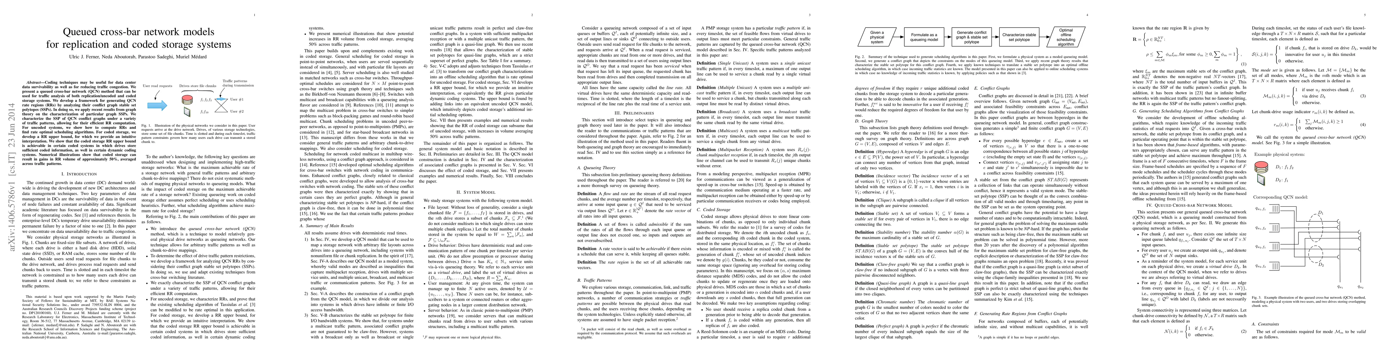 Coding techniques may be useful for data center data survivability as well as for reducing traffic congestion. We present a queued cross-bar network (QCN) method that can be used for traffic analysis of both replication/uncoded and coded storage systems. We develop a framework for generating QCN rate regions (RRs) by analyzing their conflict graph stable set polytopes (SSPs). In doing so, we apply recent results from graph theory on the characterization of particular graph SSPs. We characterize the SSP of QCN conflict graphs under a variety of traffic patterns, allowing for their efficient RR computation. For uncoded systems, we show how to compute RRs and find rate optimal scheduling algorithms. For coded storage, we develop a RR upper bound, for which we provide an intuitive interpretation. We show that the coded storage RR upper bound is achievable in certain coded systems in which drives store sufficient coded information, as well in certain dynamic coding systems. Numerical illustrations show that coded storage can result in gains in RR volume of approximately 50%, averaged across traffic patterns.