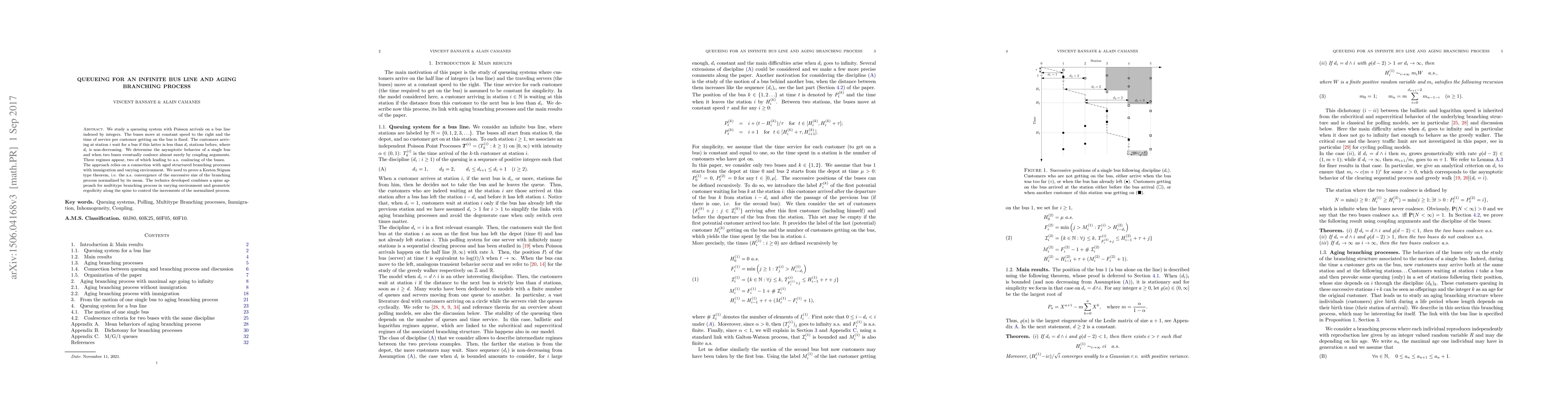 A queueing system with Poisson arrivals is studied for its asymptotic behavior when buses coalesce almost surely in three distinct regimes, relying on a connection to structured branching processes.