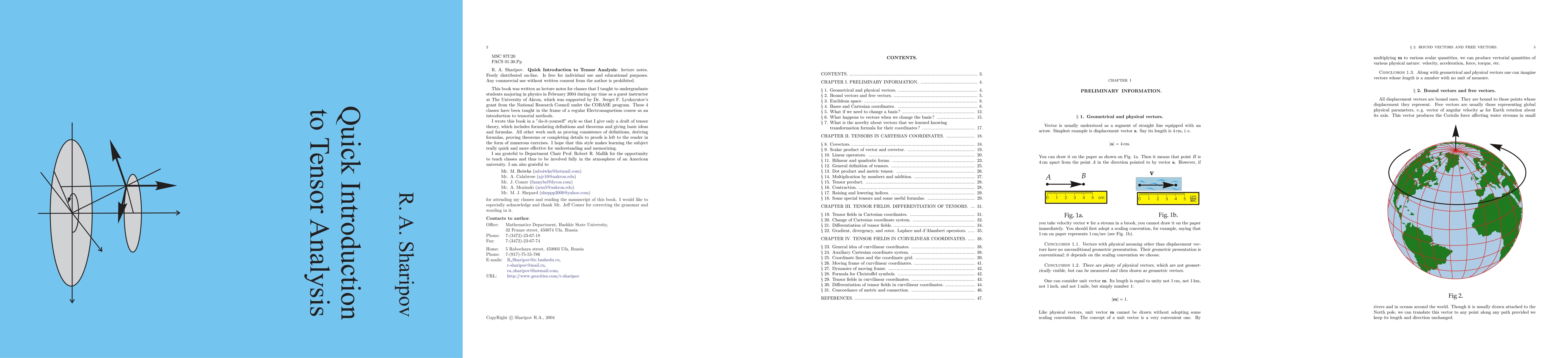 This book provides a quick introduction to tensor analysis in a DIY style, leaving exercises for readers to complete, aiming to make learning the subject efficient and effective.