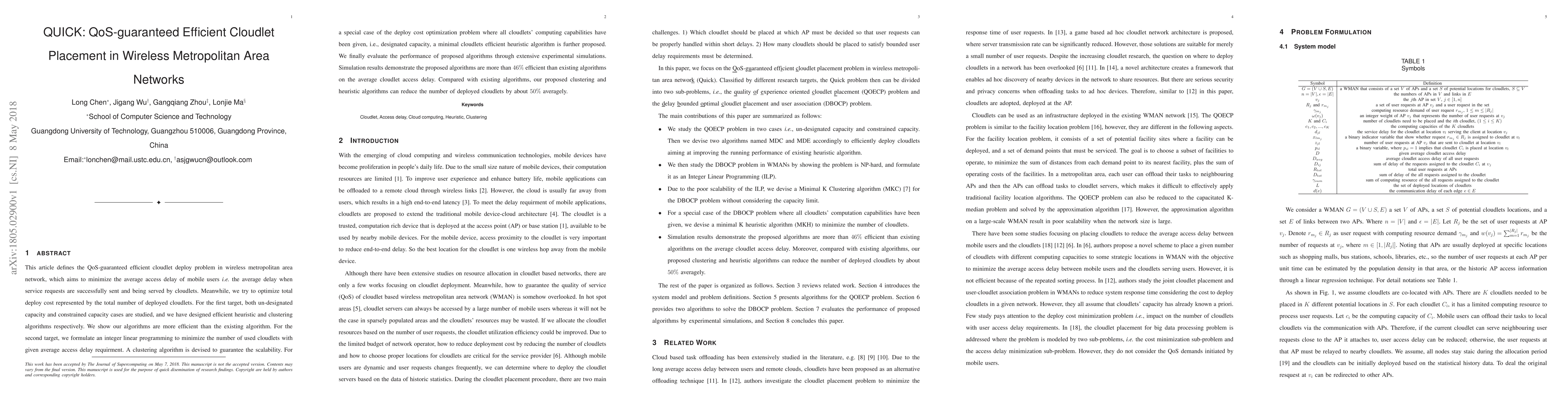 This paper proposes efficient algorithms for QoS-guaranteed cloudlet deployment in wireless metropolitan area networks, aiming to minimize average access delay and deploy cost. The study introduces heuristic and clustering algorithms that outperform existing methods, reducing average access delay by over 46% and deployed cloudlets by about 50%.
