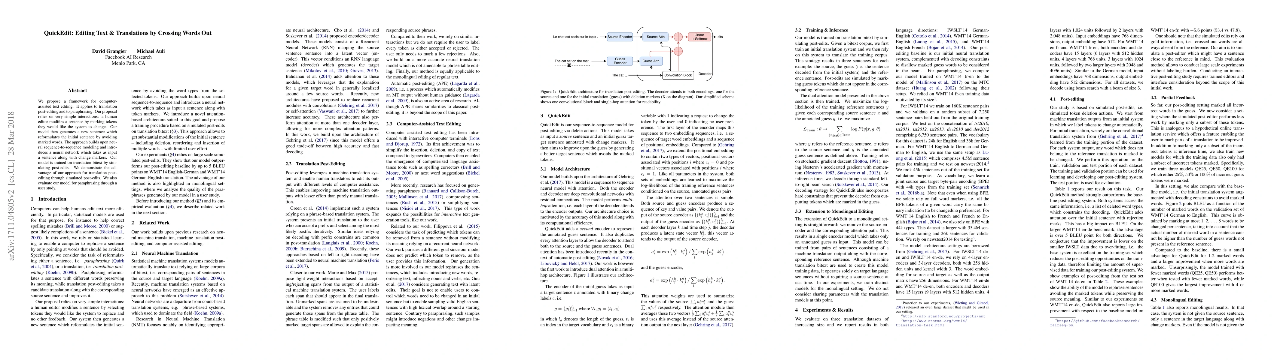 We propose a framework for computer-assisted text editing. It applies to translation post-editing and to paraphrasing. Our proposal relies on very simple interactions: a human editor modifies a sentence by marking tokens they would like the system to change. Our model then generates a new sentence which reformulates the initial sentence by avoiding marked words. The approach builds upon neural sequence-to-sequence modeling and introduces a neural network which takes as input a sentence along with change markers. Our model is trained on translation bitext by simulating post-edits. We demonstrate the advantage of our approach for translation post-editing through simulated post-edits. We also evaluate our model for paraphrasing through a user study.