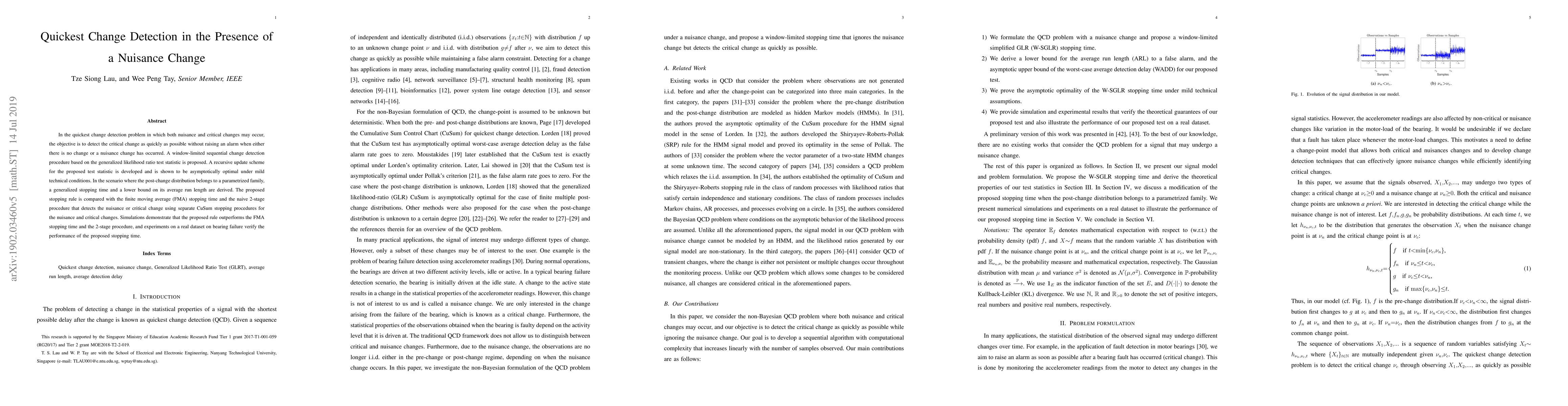 In the quickest change detection problem in which both nuisance and critical changes may occur, the objective is to detect the critical change as quickly as possible without raising an alarm when either there is no change or a nuisance change has occurred. A window-limited sequential change detection procedure based on the generalized likelihood ratio test statistic is proposed. A recursive update scheme for the proposed test statistic is developed and is shown to be asymptotically optimal under mild technical conditions. In the scenario where the post-change distribution belongs to a parametrized family, a generalized stopping time and a lower bound on its average run length are derived. The proposed stopping rule is compared with the FMA stopping time and the naive 2-stage procedure that detects the nuisance or critical change using separate CuSum stopping procedures for the nuisance and critical changes. Simulations demonstrate that the proposed rule outperforms the FMA stopping time and the 2-stage procedure, and experiments on a real dataset on bearing failure verify the performance of the proposed stopping time.