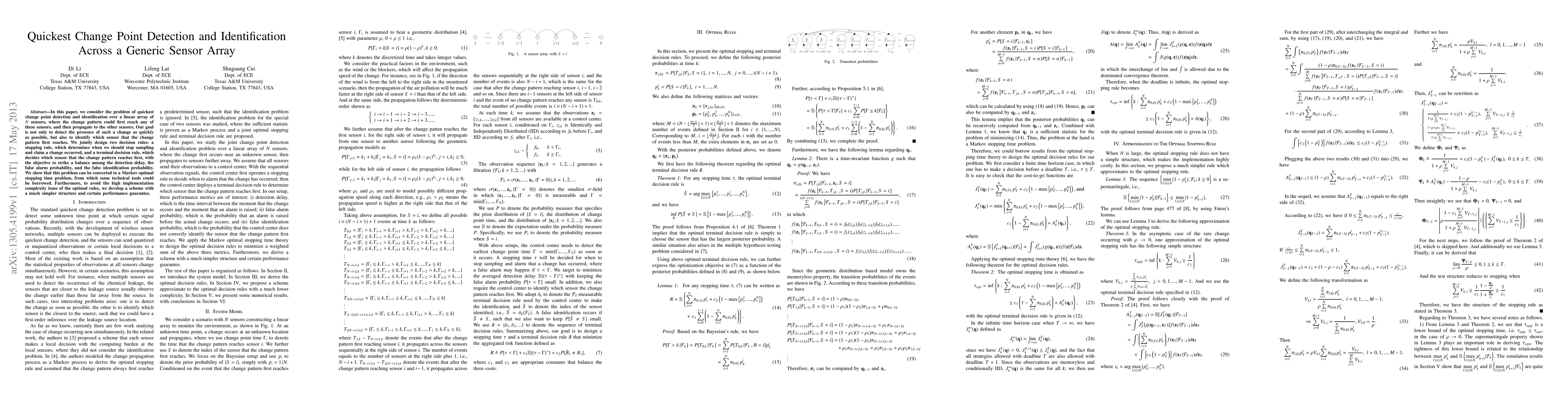 In this paper, we consider the problem of quickest change point detection and identification over a linear array of $N$ sensors, where the change pattern could first reach any of these sensors, and then propagate to the other sensors. Our goal is not only to detect the presence of such a change as quickly as possible, but also to identify which sensor that the change pattern first reaches. We jointly design two decision rules: a stopping rule, which determines when we should stop sampling and claim a change occurred, and a terminal decision rule, which decides which sensor that the change pattern reaches first, with the objective to strike a balance among the detection delay, the false alarm probability, and the false identification probability. We show that this problem can be converted to a Markov optimal stopping time problem, from which some technical tools could be borrowed. Furthermore, to avoid the high implementation complexity issue of the optimal rules, we develop a scheme with a much simpler structure and certain performance guarantee.