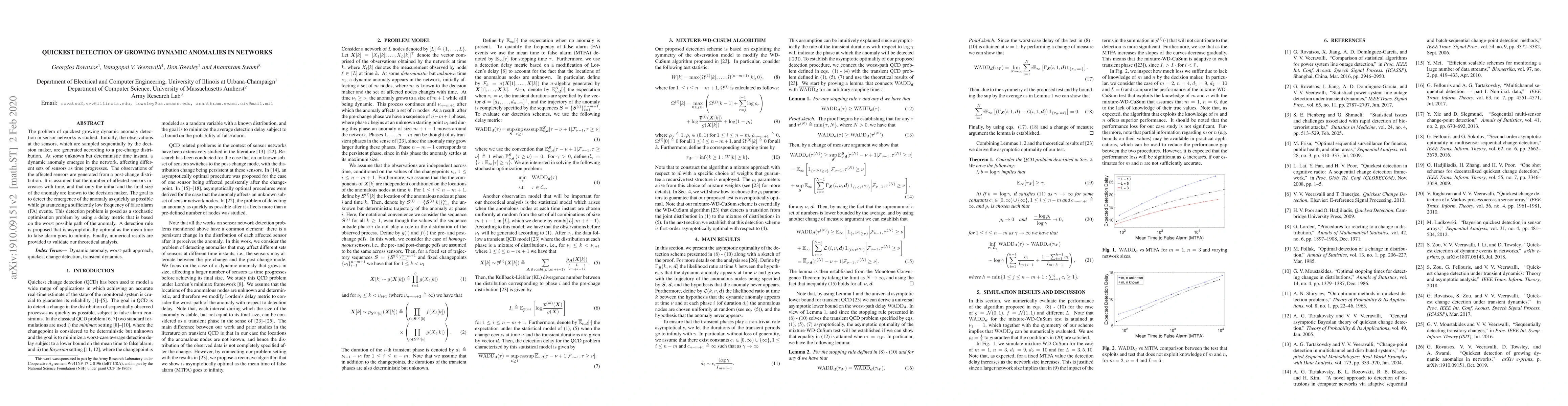 This paper addresses the challenge of detecting growing dynamic anomalies in sensor networks as quickly as possible while minimizing false alarms. It proposes a detection rule that is asymptotically optimal and validates the approach with numerical results.