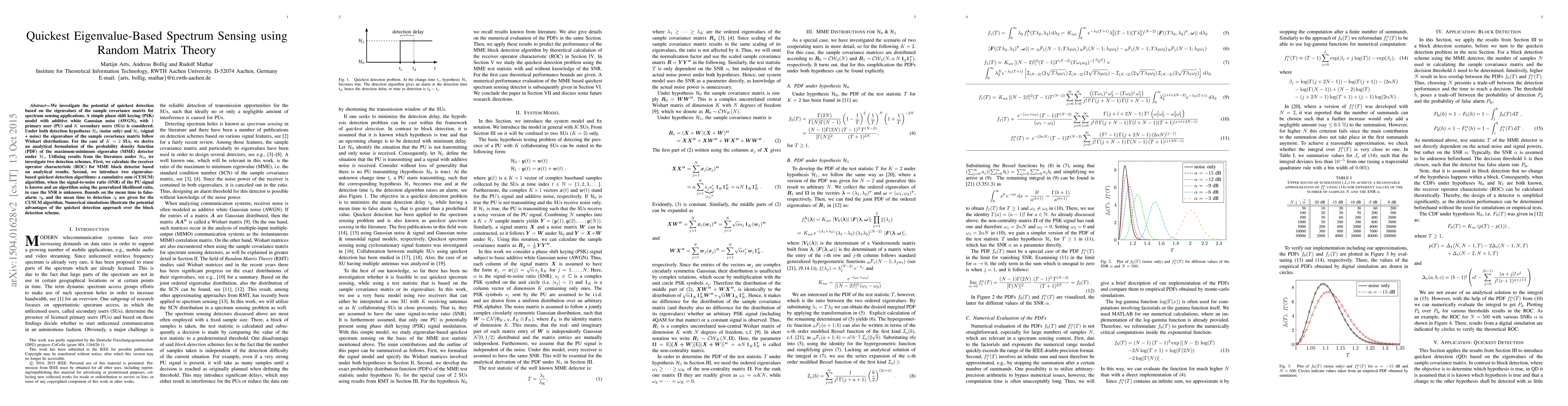 This paper explores quickest detection for spectrum sensing using eigenvalues of the sample covariance matrix, leveraging random matrix theory. It introduces two eigenvalue-based detection algorithms: a CUSUM method for known signal-to-noise ratio and a generalized likelihood ratio approach for unknown SNR, and demonstrates their advantages through numerical simulations.