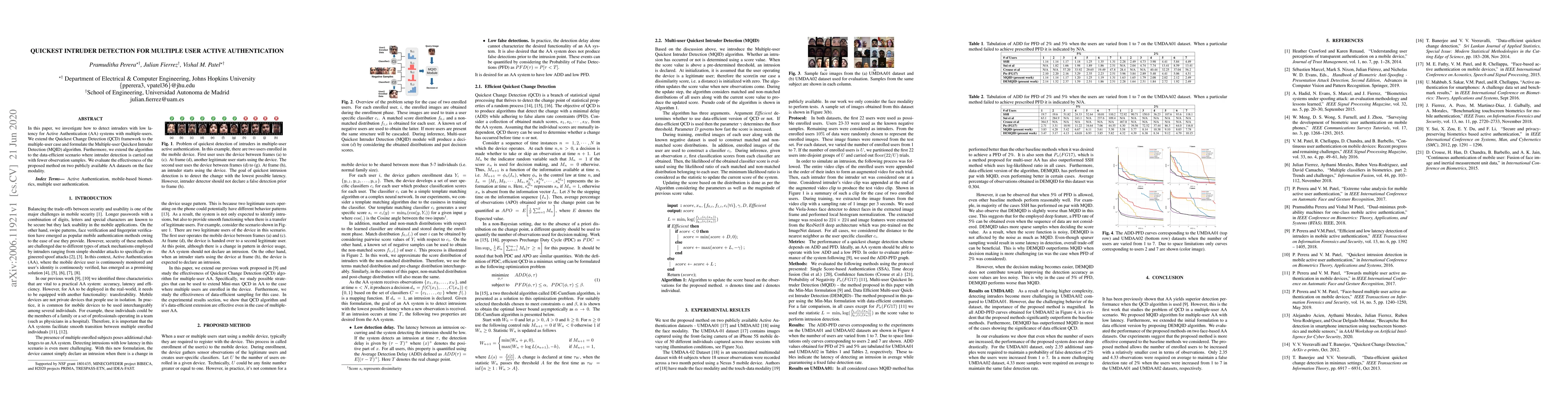 In this paper, we investigate how to detect intruders with low latency for Active Authentication (AA) systems with multiple-users. We extend the Quickest Change Detection (QCD) framework to the multiple-user case and formulate the Multiple-user Quickest Intruder Detection (MQID) algorithm. Furthermore, we extend the algorithm to the data-efficient scenario where intruder detection is carried out with fewer observation samples. We evaluate the effectiveness of the proposed method on two publicly available AA datasets on the face modality.