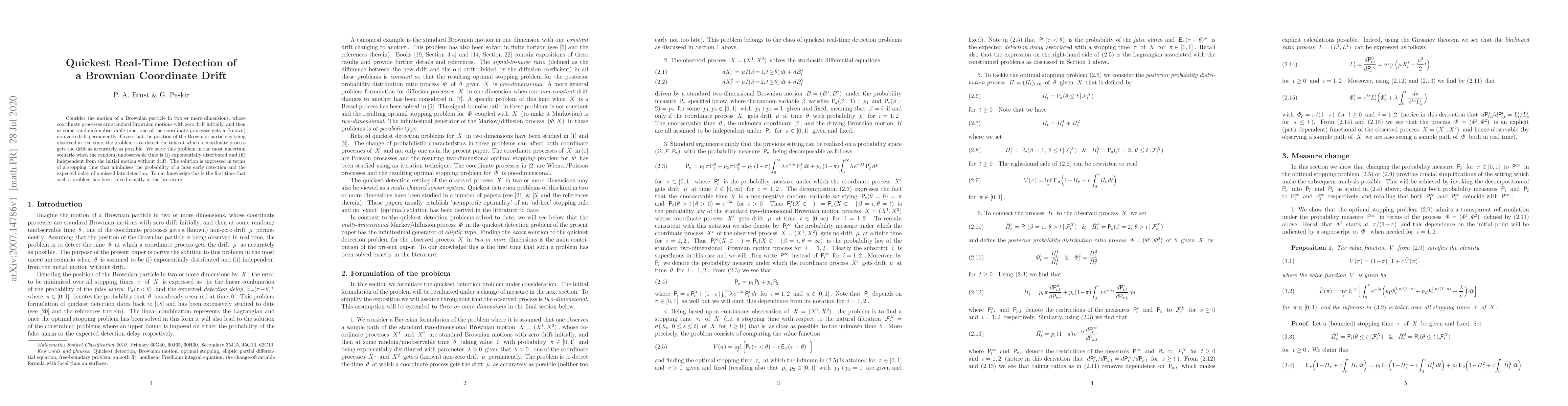 Researchers developed a method to detect when a Brownian particle's motion suddenly changes direction in real-time, with the goal of minimizing false alarms and missing late detections.