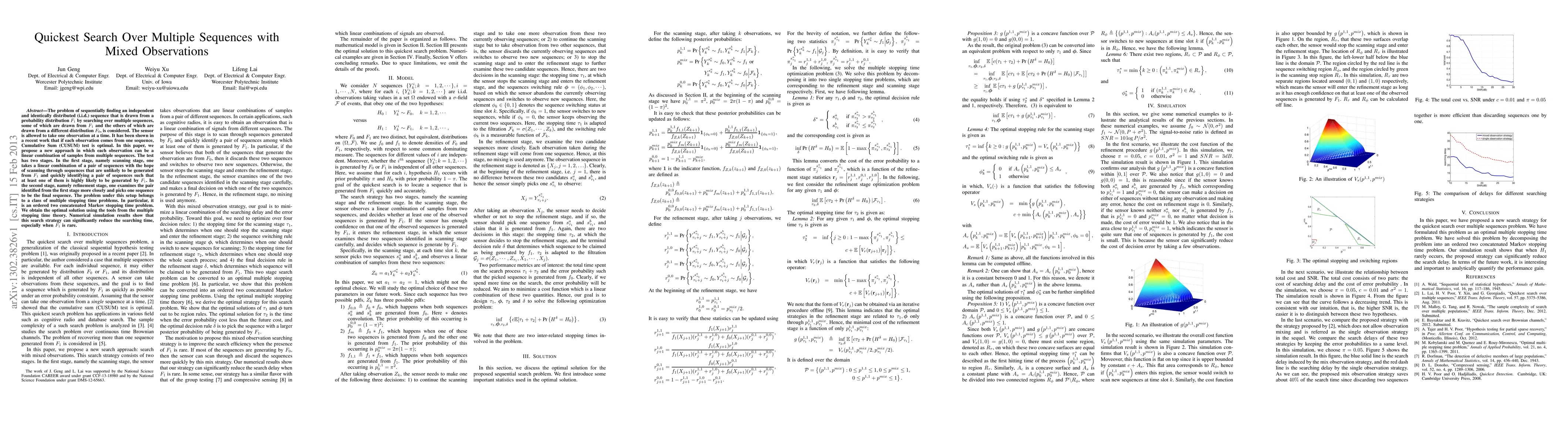The problem of sequentially finding an independent and identically distributed (i.i.d.) sequence that is drawn from a probability distribution $F_1$ by searching over multiple sequences, some of which are drawn from $F_1$ and the others of which are drawn from a different distribution $F_0$, is considered. The sensor is allowed to take one observation at a time. It has been shown in a recent work that if each observation comes from one sequence, Cumulative Sum (CUSUM) test is optimal. In this paper, we propose a new approach in which each observation can be a linear combination of samples from multiple sequences. The test has two stages. In the first stage, namely scanning stage, one takes a linear combination of a pair of sequences with the hope of scanning through sequences that are unlikely to be generated from $F_1$ and quickly identifying a pair of sequences such that at least one of them is highly likely to be generated by $F_1$. In the second stage, namely refinement stage, one examines the pair identified from the first stage more closely and picks one sequence to be the final sequence. The problem under this setup belongs to a class of multiple stopping time problems. In particular, it is an ordered two concatenated Markov stopping time problem. We obtain the optimal solution using the tools from the multiple stopping time theory. Numerical simulation results show that this search strategy can significantly reduce the searching time, especially when $F_{1}$ is rare.