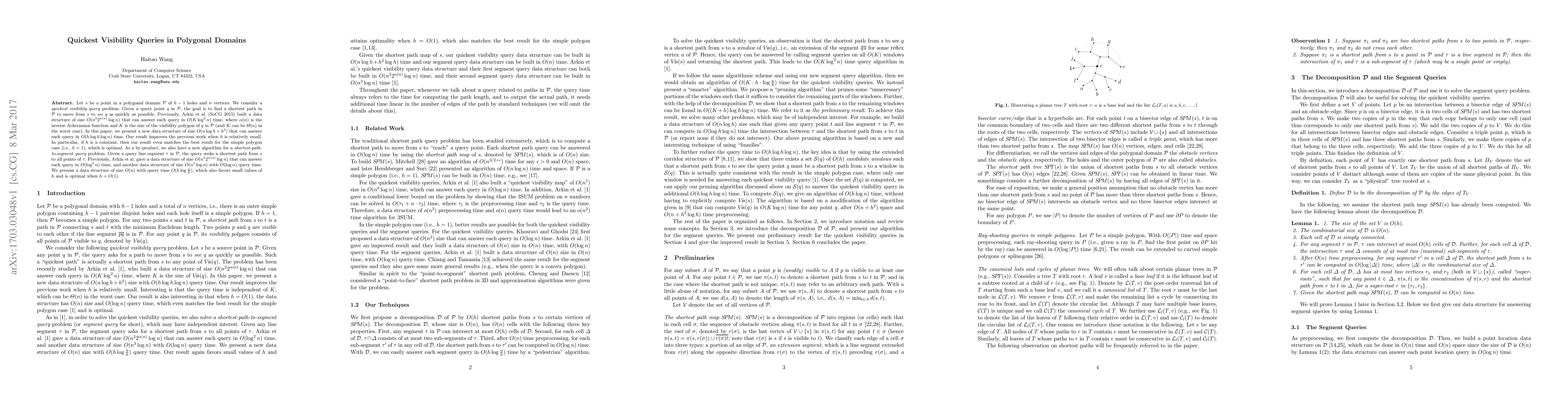 This research paper presents a new data structure to efficiently answer quickest visibility queries in polygonal domains, achieving improved time complexity of $O(h extlog h extlog n)$ for relatively small values of $h$.