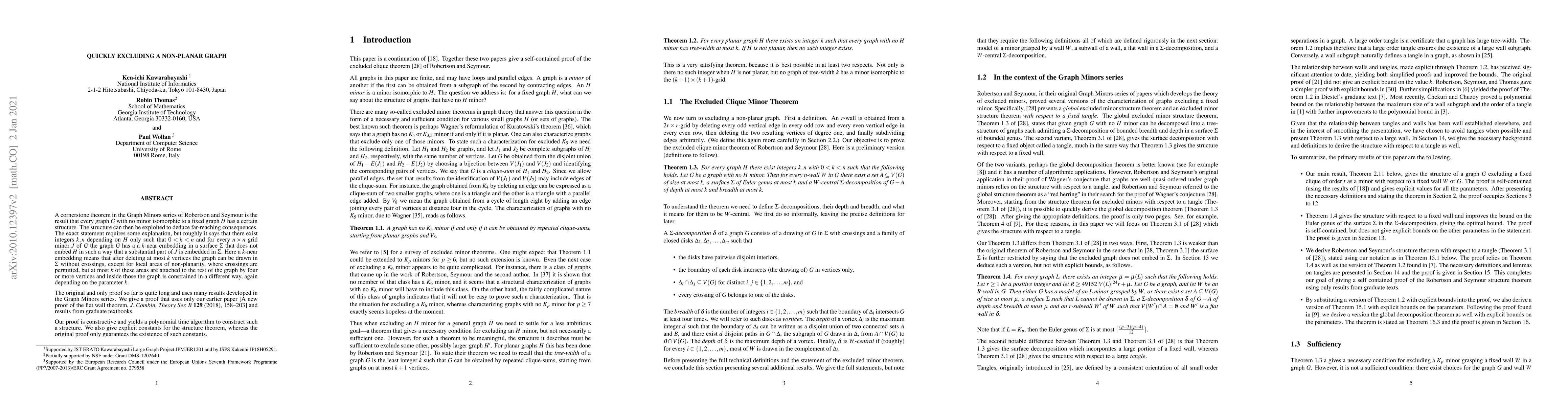 Researchers have developed a new proof of a theorem in graph theory that shows every non-planar graph can be rearranged to fit on a surface without violating certain structural constraints, leading to more efficient algorithms for analyzing these graphs.