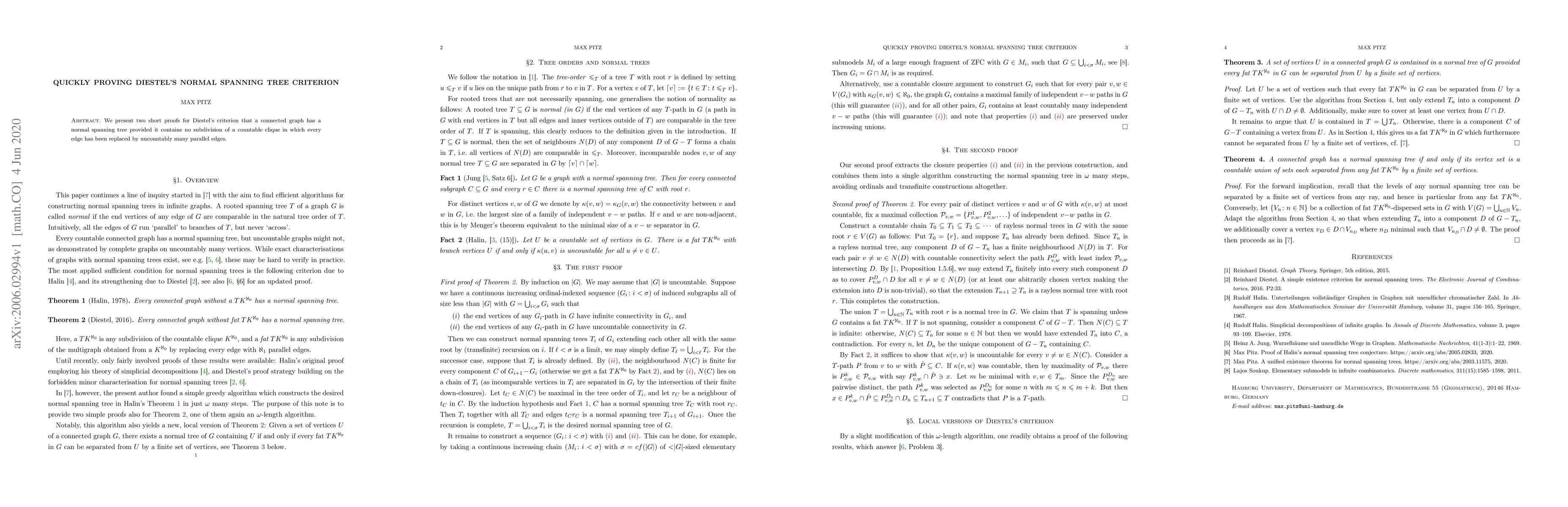 The research provides concise evidence for Diestel's criterion, shedding light on the conditions necessary for a graph to have a normal spanning tree.