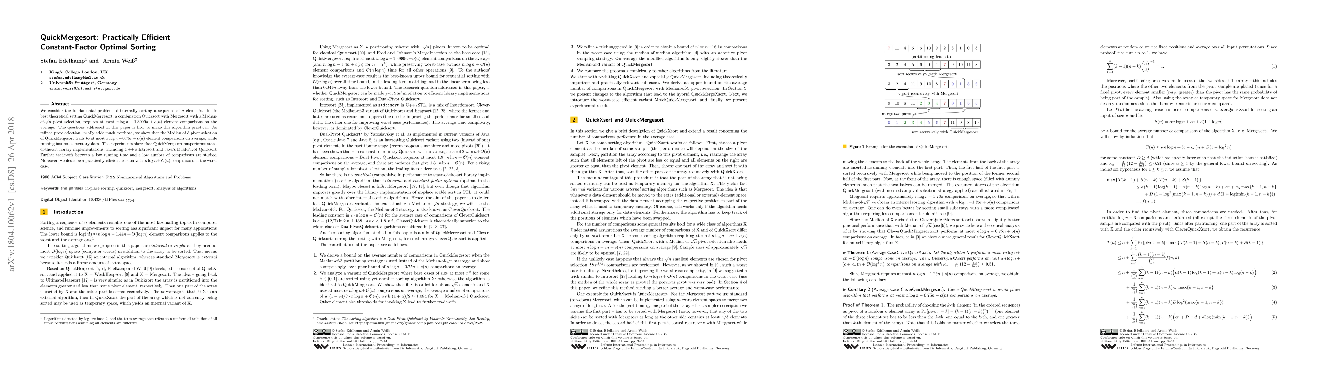 QuickMergesort combines Quicksort with Mergesort using a Median-of-3 pivot selection to achieve practical efficiency while maintaining a nearly optimal average-case performance of $n \log n - 0.75n + o(n)$ comparisons, outperforming other sorting algorithms in practical scenarios.