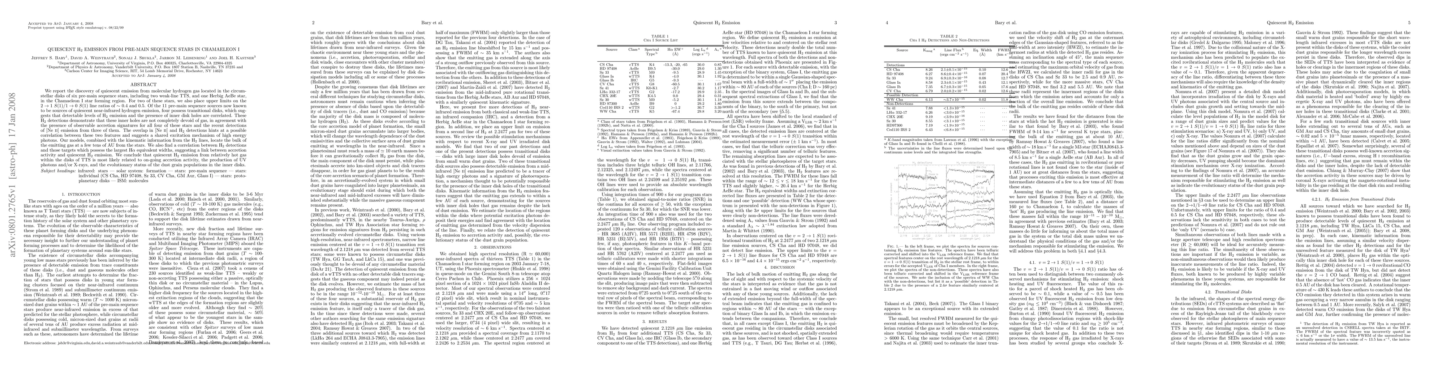 Astronomers discovered quiescent hydrogen emission from six pre-main sequence stars in Chamaeleon I, suggesting a link between accretion activity and the emission. The findings imply that quiescent H2 emission is related to ongoing accretion and UV photon production.