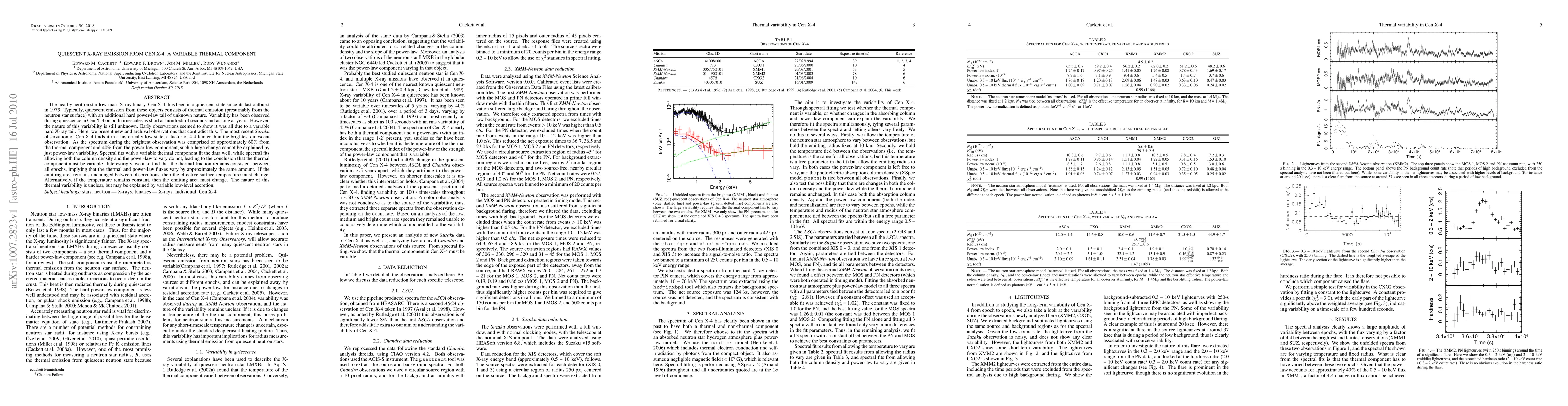 New observations of Cen X-4 reveal a variable thermal component in its quiescent X-ray emission, contradicting earlier findings of a hard power-law tail. The thermal component's fraction remains consistent across epochs, suggesting a change in surface temperature or emitting area.