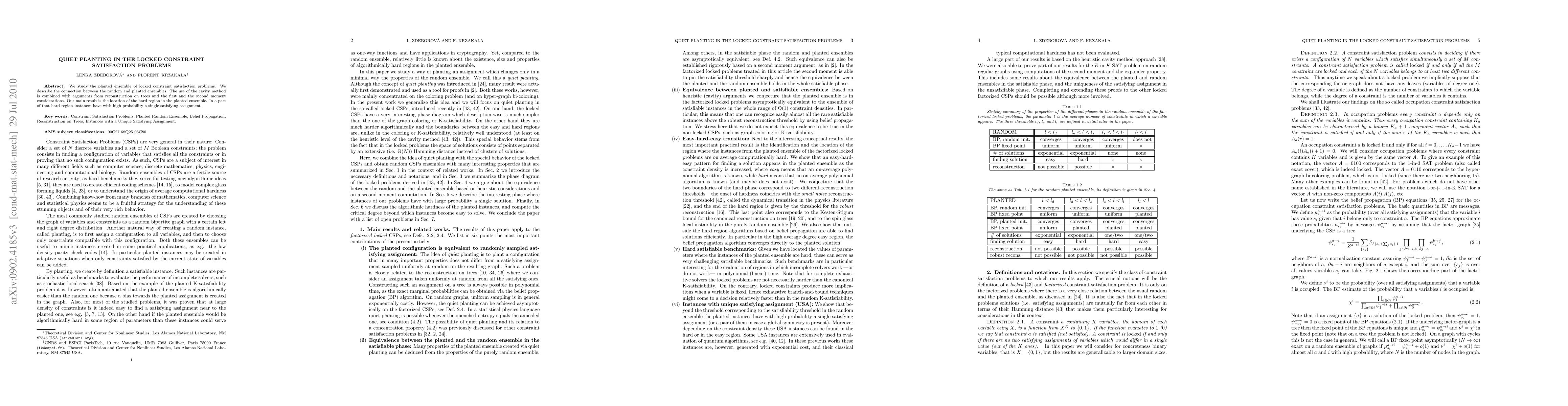 The paper presents a detailed analysis of the planted locked CSPs, identifying the hard region and its connection to the reconstruction problem, and conjecturing the equivalence of planted and random ensembles in the satisfiable phase.