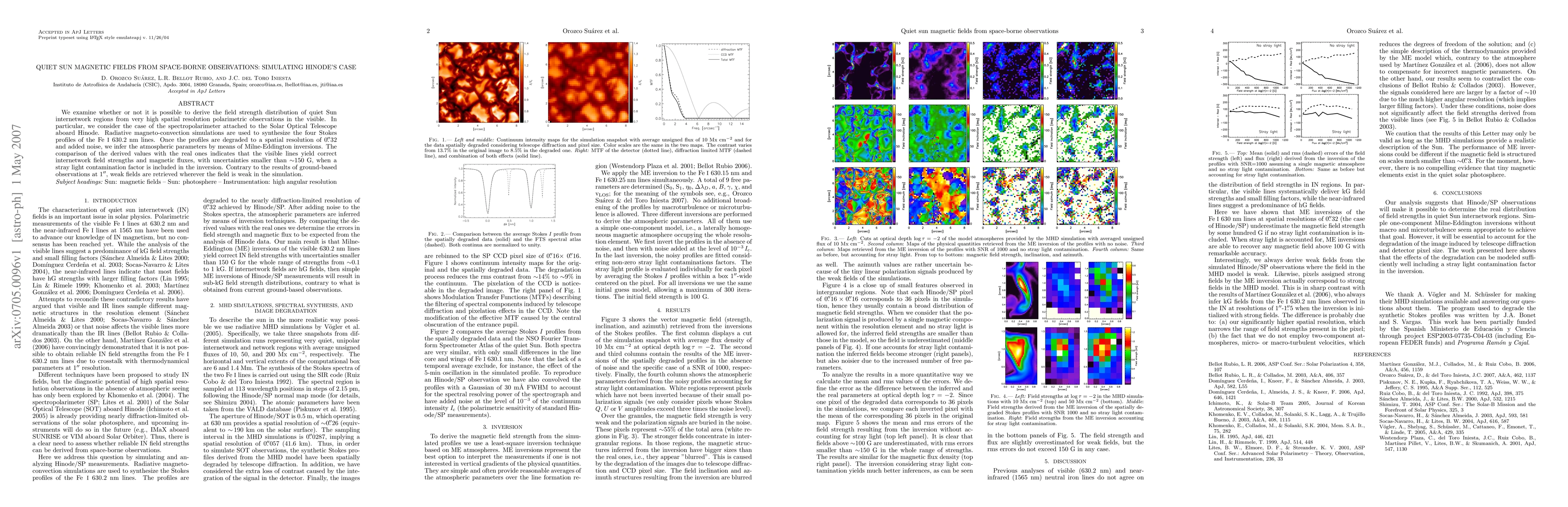 We examine whether or not it is possible to derive the field strength distribution of quiet Sun internetwork regions from very high spatial resolution polarimetric observations in the visible. In particular, we consider the case of the spectropolarimeter attached to the Solar Optical Telescope aboard Hinode. Radiative magneto-convection simulations are used to synthesize the four Stokes profiles of the \ion{Fe}{1} 630.2 nm lines. Once the profiles are degraded to a spatial resolution of 0\farcs32 and added noise, we infer the atmospheric parameters by means of Milne-Eddington inversions. The comparison of the derived values with the real ones indicates that the visible lines yield correct internetwork field strengths and magnetic fluxes, with uncertainties smaller than $\sim$150 G, when a stray light contamination factor is included in the inversion. Contrary to the results of ground-based observations at 1\arcsec, weak fields are retrieved wherever the field is weak in the simulation.