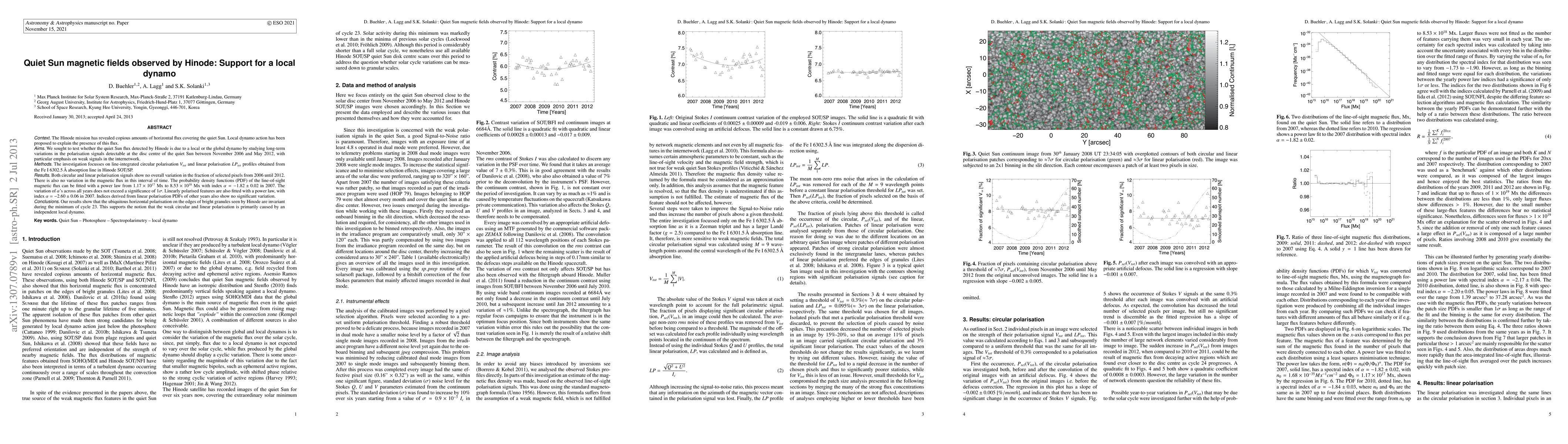 The Hinode mission detected horizontal flux in the quiet Sun, suggesting local dynamo action. Analysis of circular and linear polarisation signals from 2006 to 2012 shows no significant variation, supporting the hypothesis that the quiet Sun's flux is due to a local rather than global dynamo.