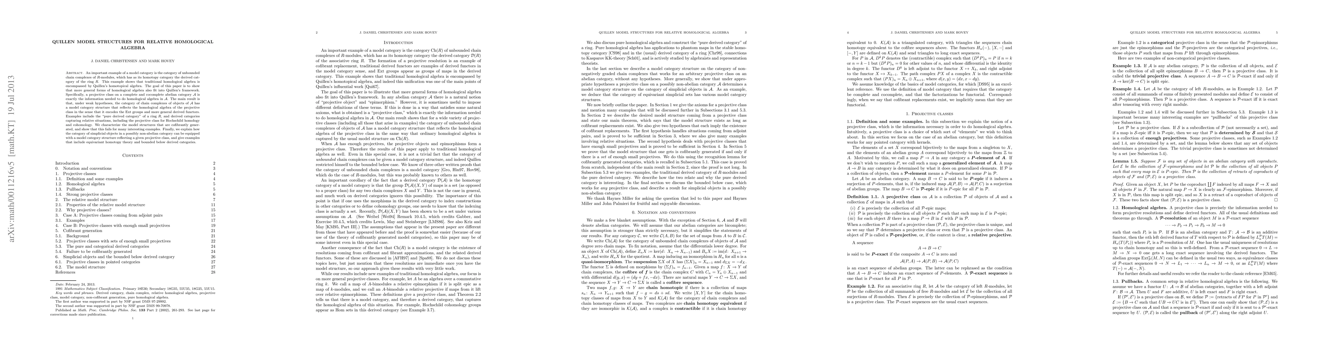 This paper extends Quillen's model category framework to encompass more general forms of homological algebra by introducing model structures for chain complexes in abelian categories based on projective classes. It demonstrates that these structures encode Ext groups and derived functors, with examples including derived categories and equivariant homotopy theory.