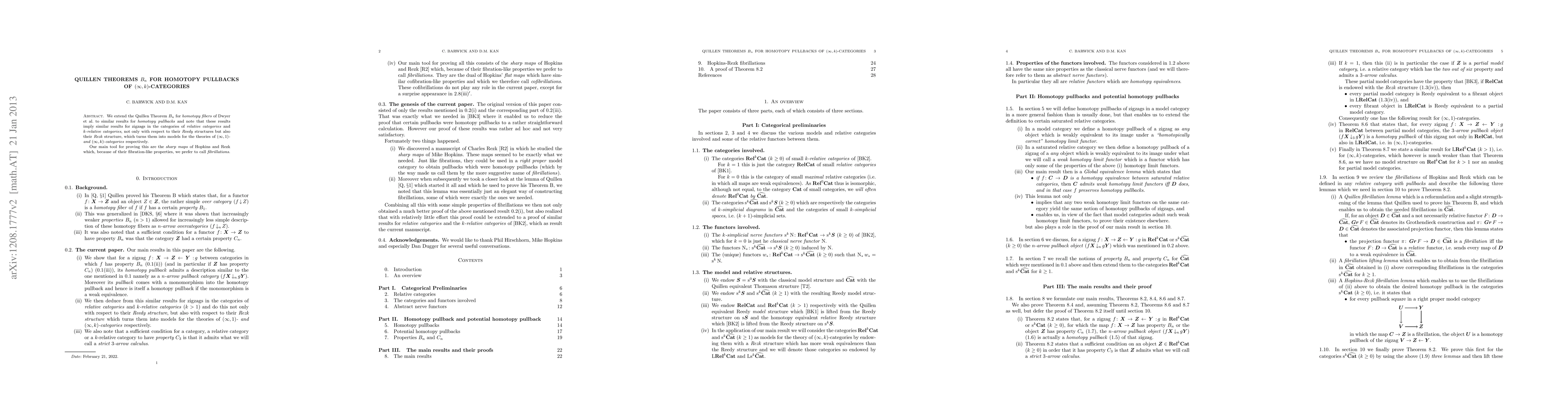 The paper extends Quillen's Theorem Bn for homotopy fibers to homotopy pullbacks in (infinity, k)-categories. It demonstrates these results also apply to zigzags in relative and k-relative categories, respecting their Reedy and Rezk structures.