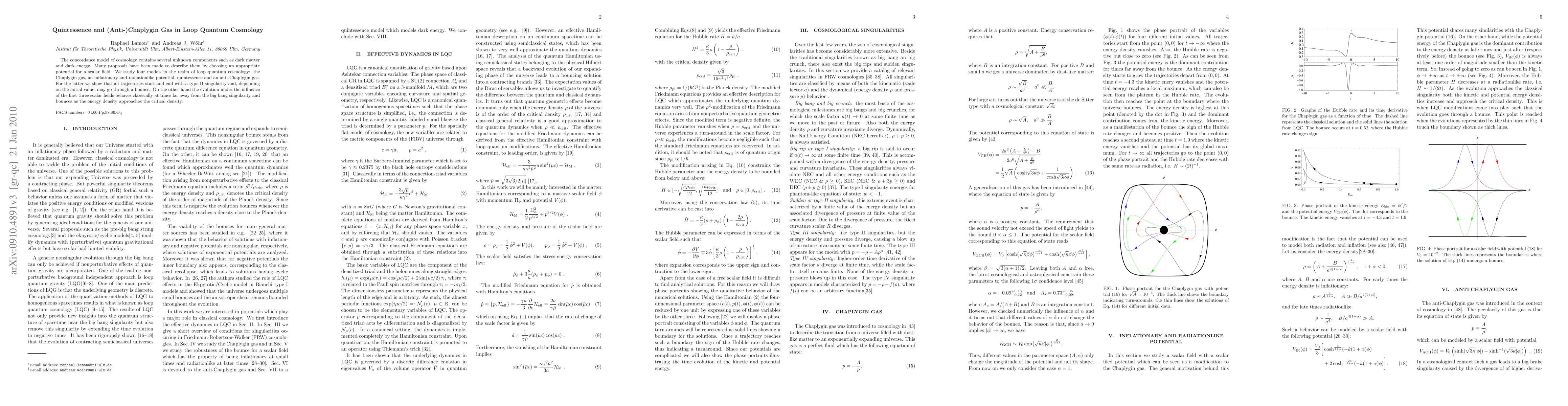 The concordance model of cosmology contains several unknown components such as dark matter and dark energy. Many proposals have been made to describe them by choosing an appropriate potential for a scalar field. We study four models in the realm of loop quantum cosmology (LQC): the Chaplygin gas, an inflationary and radiation-like potential, quintessence and an anti-Chaplygin gas. For the latter we show that all trajectories start and end with a type II singularity and, depending on the inital value, may go through a bounce. On the other hand the evolution under the influence of the first three scalar fields behaves classically at times far away from the big bang singularity and bounces as the energy density approaches the critical density.