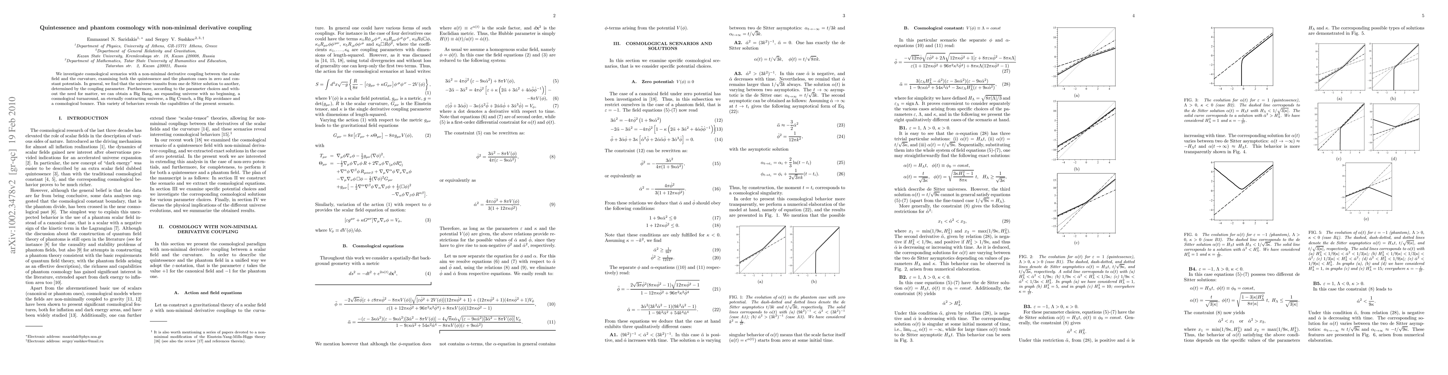 This paper explores cosmological models with non-minimal derivative coupling between a scalar field and curvature, analyzing both quintessence and phantom scenarios. It demonstrates diverse universe behaviors, including Big Bang, cosmological bounce, and Big Rip avoidance, showcasing the flexibility of the model.