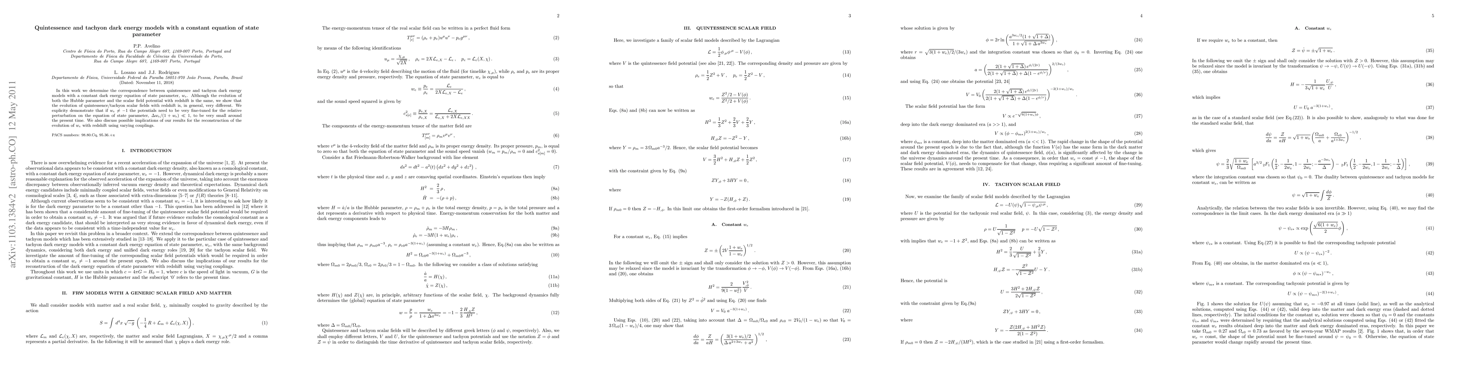 In this work we determine the correspondence between quintessence and tachyon dark energy models with a constant dark energy equation of state parameter, $w_e$. Although the evolution of both the Hubble parameter and the scalar field potential with redshift is the same, we show that the evolution of quintessence/tachyon scalar fields with redshift is, in general, very different. We explicity demonstrate that if $w_e \neq -1$ the potentials need to be very fine-tuned for the relative perturbation on the equation of state parameter, $\Delta w_e/(1+w_e) \ll 1$, to be very small around the present time. We also discuss possible implications of our results for the reconstruction of the evolution of $w_e$ with redshift using varying couplings.