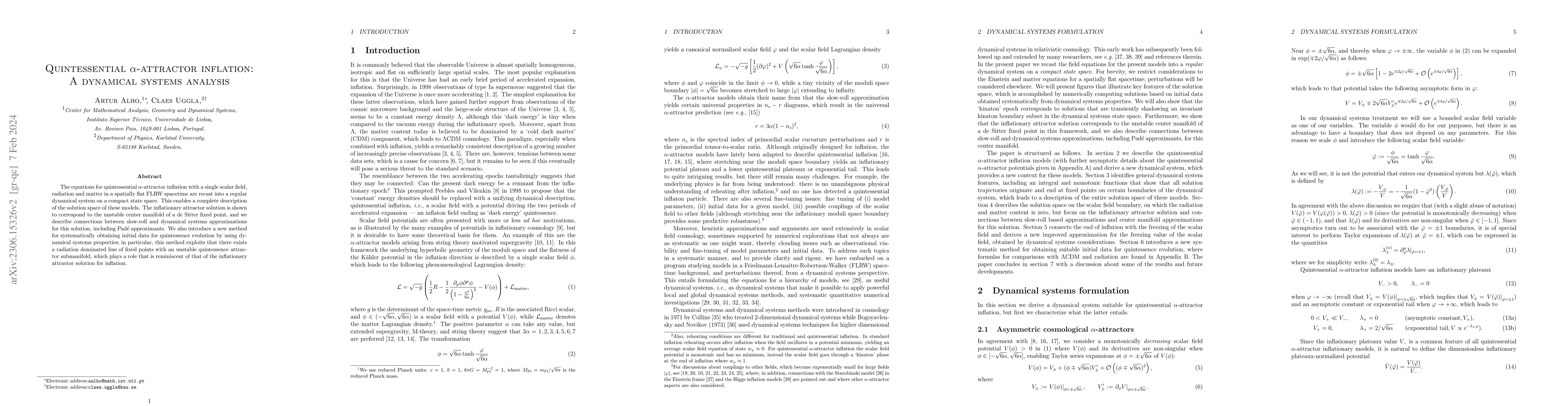 This paper recasts quintessential $\alpha$-attractor inflation into a dynamical system, revealing the inflationary attractor solution as the unstable center manifold of a de Sitter fixed point. The study also introduces a new method for obtaining initial data for quintessence evolution using dynamical systems properties.
