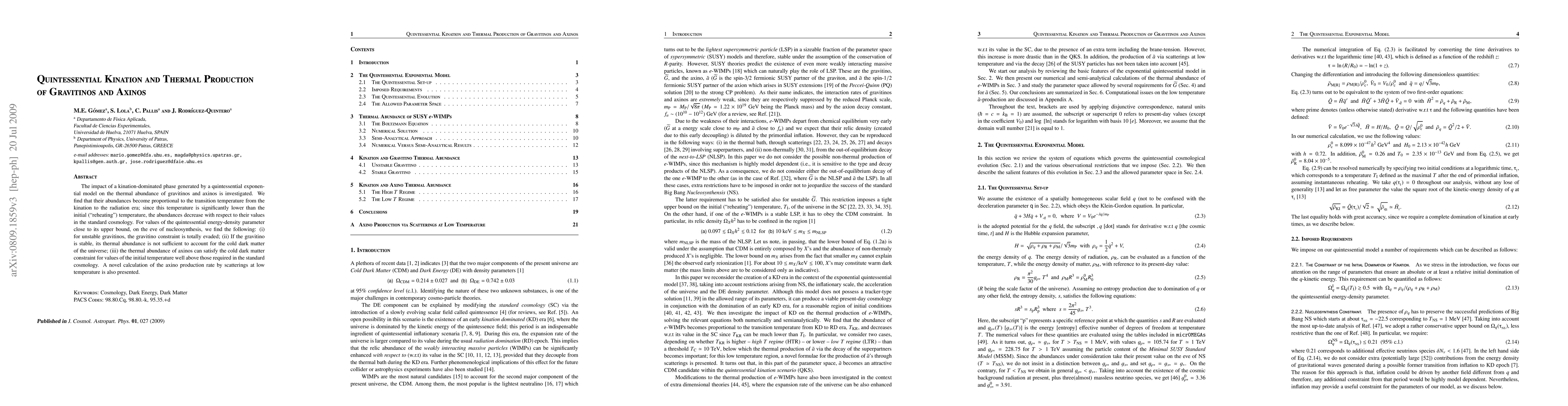 The impact of a kination-dominated phase generated by a quintessential exponential model on the thermal abundance of gravitinos and axinos is investigated. We find that their abundances become proportional to the transition temperature from the kination to the radiation era; since this temperature is significantly lower than the initial ("reheating") temperature, the abundances decrease with respect to their values in the standard cosmology. For values of the quintessential energy-density parameter close to its upper bound, at the eve of nucleosynthesis, we find the following: (i) for unstable gravitinos, the gravitino constraint is totally evaded; (ii) If the gravitino is stable, its thermal abundance is not sufficient to account for the cold dark matter of the universe; (iii) the thermal abundance of axinos can satisfy the cold dark matter constraint for values of the initial temperature well above those required in the standard cosmology. A novel calculation of the axino production rate by scatterings at low temperature is also presented.