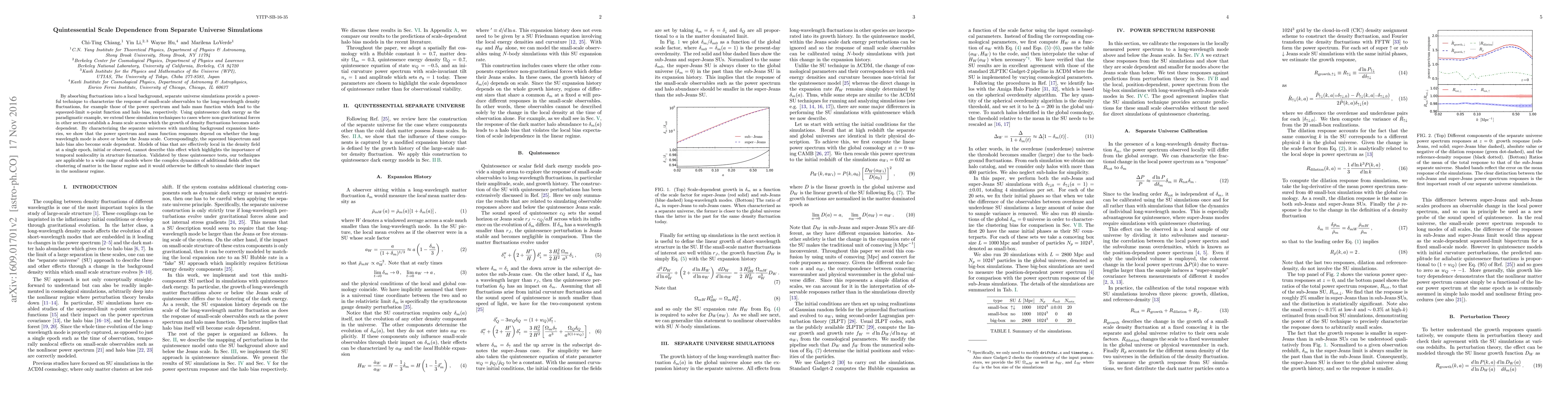 By absorbing fluctuations into a local background, separate universe simulations provide a powerful technique to characterize the response of small-scale observables to the long-wavelength density fluctuations, for example those of the power spectrum and halo mass function which lead to the squeezed-limit $n$-point function and halo bias, respectively. Using quintessence dark energy as the paradigmatic example, we extend these simulation techniques to cases where non-gravitational forces in other sectors establish a Jeans scale across which the growth of density fluctuations becomes scale dependent. By characterizing the separate universes with matching background expansion histories, we show that the power spectrum and mass function responses depend on whether the long-wavelength mode is above or below the Jeans scale. Correspondingly, the squeezed bispectrum and halo bias also become scale dependent. Models of bias that are effectively local in the density field at a single epoch, initial or observed, cannot describe this effect which highlights the importance of temporal nonlocality in structure formation. Validated by these quintessence tests, our techniques are applicable to a wide range of models where the complex dynamics of additional fields affect the clustering of matter in the linear regime and it would otherwise be difficult to simulate their impact in the nonlinear regime.