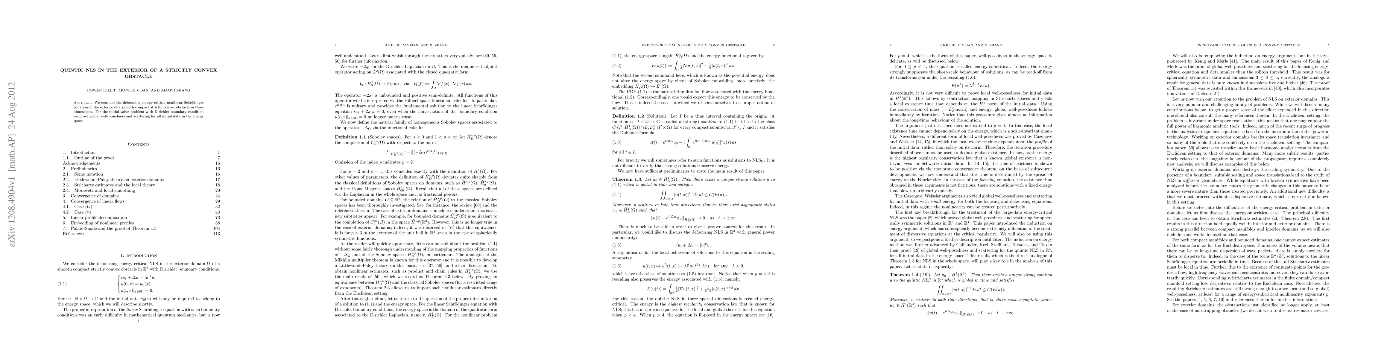 Summary: This paper proves global well-posedness and scattering for the defocusing energy-critical nonlinear Schrödinger equation in the exterior of a strictly convex obstacle in three dimensions, under Dirichlet boundary conditions for all initial data in the energy space.