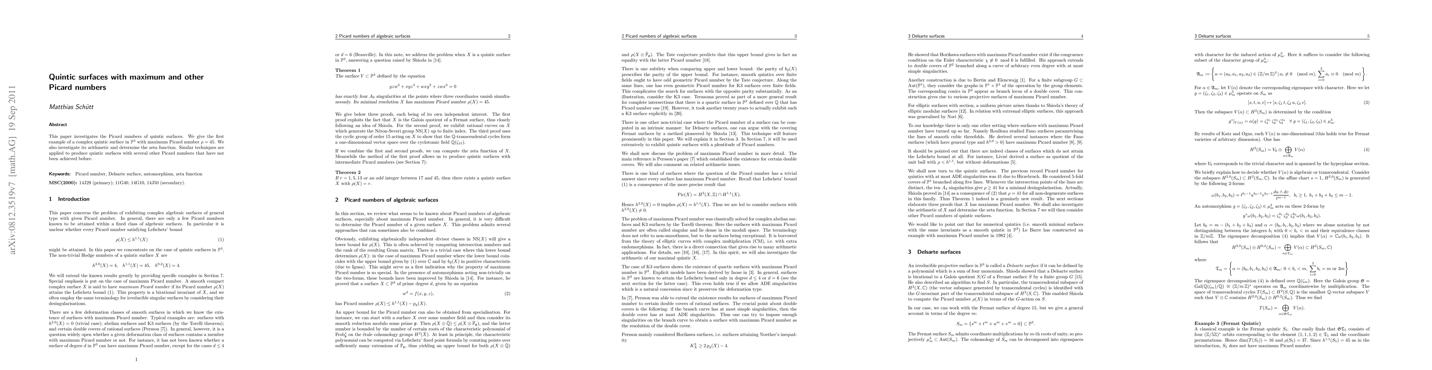 This paper explores the Picard numbers of quintic surfaces, presenting the first example of a complex quintic surface in projective space with the maximum Picard number of 45, along with its arithmetic properties and zeta function. It also develops methods to construct quintic surfaces with previously unachieved Picard numbers.