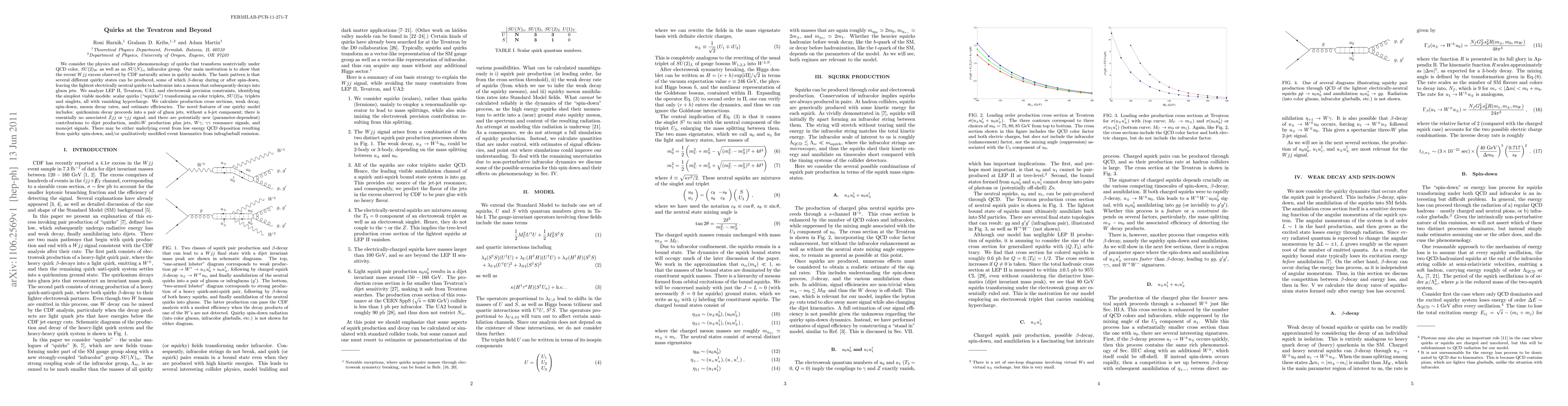 We consider the physics and collider phenomenology of quirks that transform nontrivially under QCD color, SU(2)_W as well as an SU(N)_{ic} infracolor group. Our main motivation is to show that the recent Wjj excess observed by CDF naturally arises in quirky models. The basic pattern is that several different quirky states can be produced, some of which beta-decay during or after spin-down, leaving the lightest electrically neutral quirks to hadronize into a meson that subsequently decays into gluon jets. We analyze LEP II, Tevatron, UA2, and electroweak precision constraints, identifying the simplest viable models: scalar quirks ("squirks") transforming as color triplets, SU(2)_W triplets and singlets, all with vanishing hypercharge. We calculate production cross sections, weak decay, spin-down, meson decay rates, and estimate efficiencies. The novel features of our quirky model includes: quirkonium decay proceeds into a pair of gluon jets, without a b-jet component; there is essentially no associated Zjj or gamma+jj signal; and there are potentially new (parameter-dependent) contributions to dijet production, multi-W production plus jets, W+gamma, gamma+gamma resonance signals, and monojet signals. There may be either underlying event from low energy QCD deposition resulting from quirky spin-down, and/or qualitatively modified event kinematics from infraglueball emission.