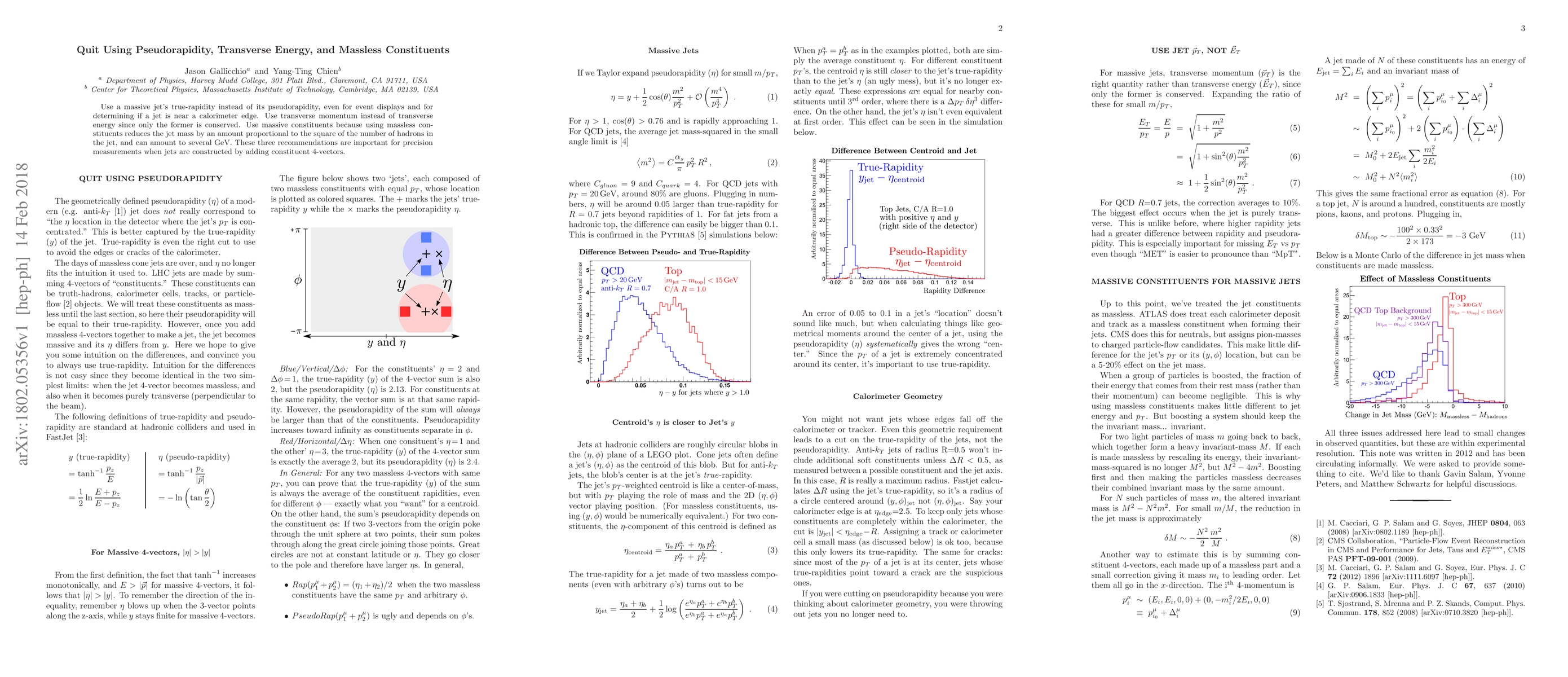 Researchers recommend using true-rapidity instead of pseudorapidity for jets, transverse momentum instead of energy, and massive constituents to reduce mass errors in particle physics measurements.