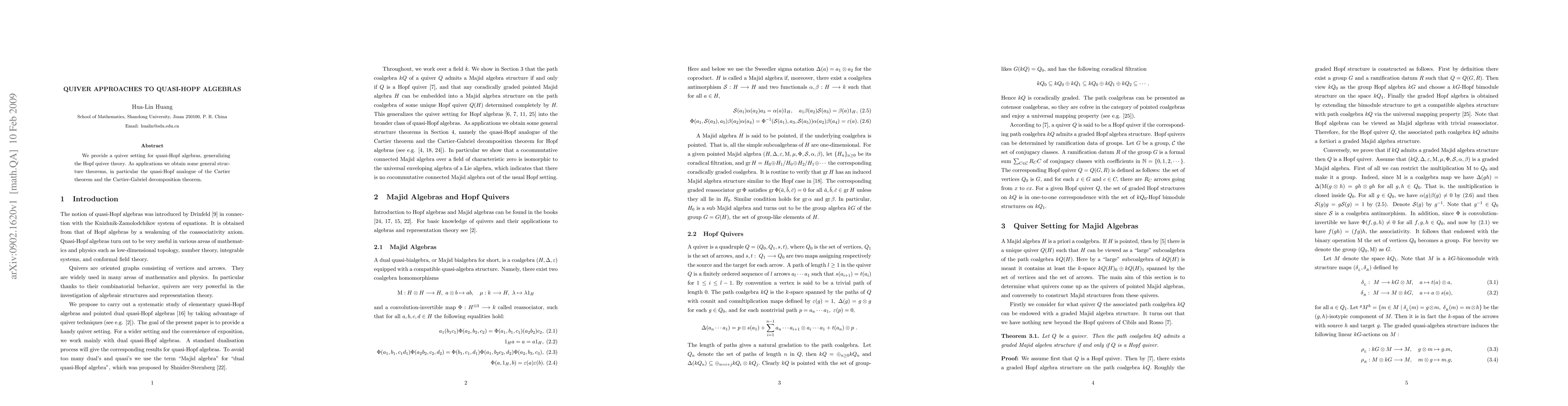 This paper establishes a quiver framework for quasi-Hopf algebras, extending Hopf quiver theory, and derives general structure theorems including quasi-Hopf analogues of the Cartier theorem and the Cartier-Gabriel decomposition theorem.