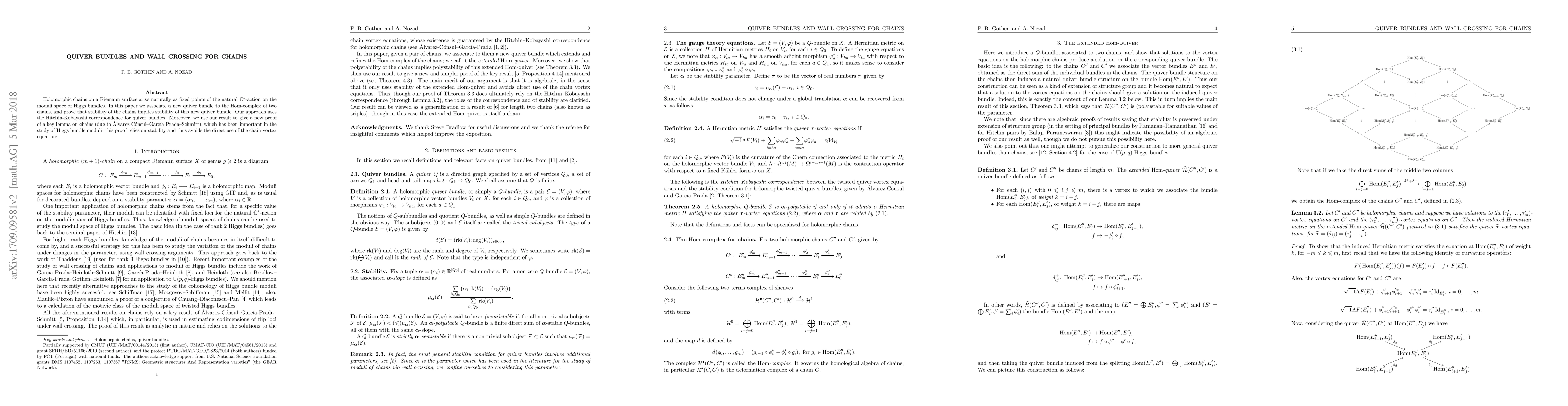 This paper associates a new quiver bundle to the Hom-complex of two holomorphic chains on a Riemann surface, proving that stability of the chains ensures stability of the quiver bundle. The authors use the Hitchin-Kobayashi correspondence and provide a new proof for a significant lemma on chains, avoiding the need for direct use of the chain vortex equations.