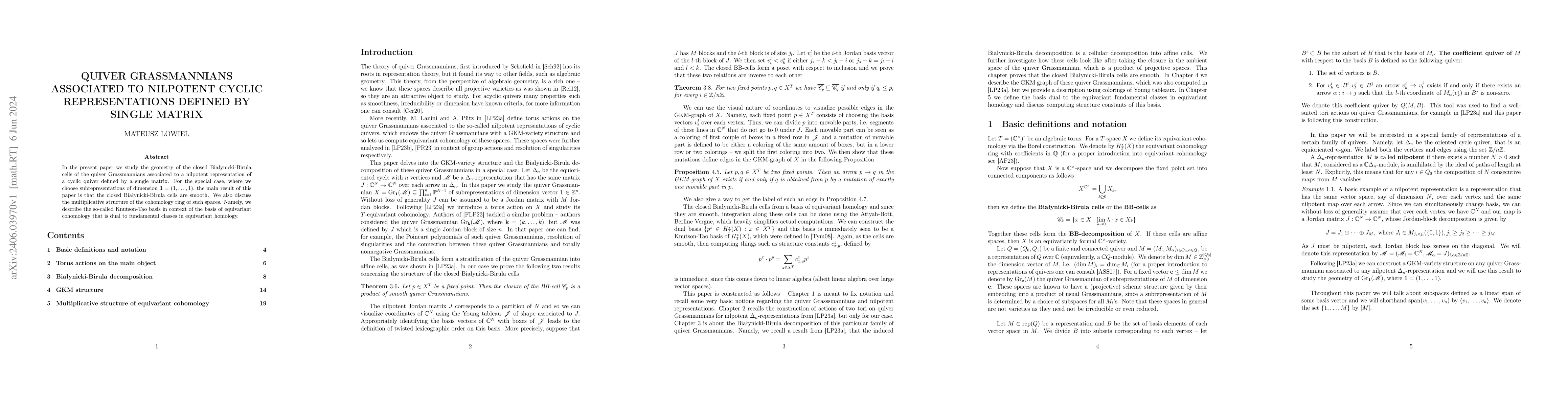 This paper explores the geometry of closed Białynicki-Birula cells in quiver Grassmannians linked to nilpotent cyclic representations defined by a single matrix. It demonstrates that these cells are smooth for subrepresentations of dimension 1, and discusses the multiplicative structure of their cohomology ring, particularly the Knutson-Tao basis.