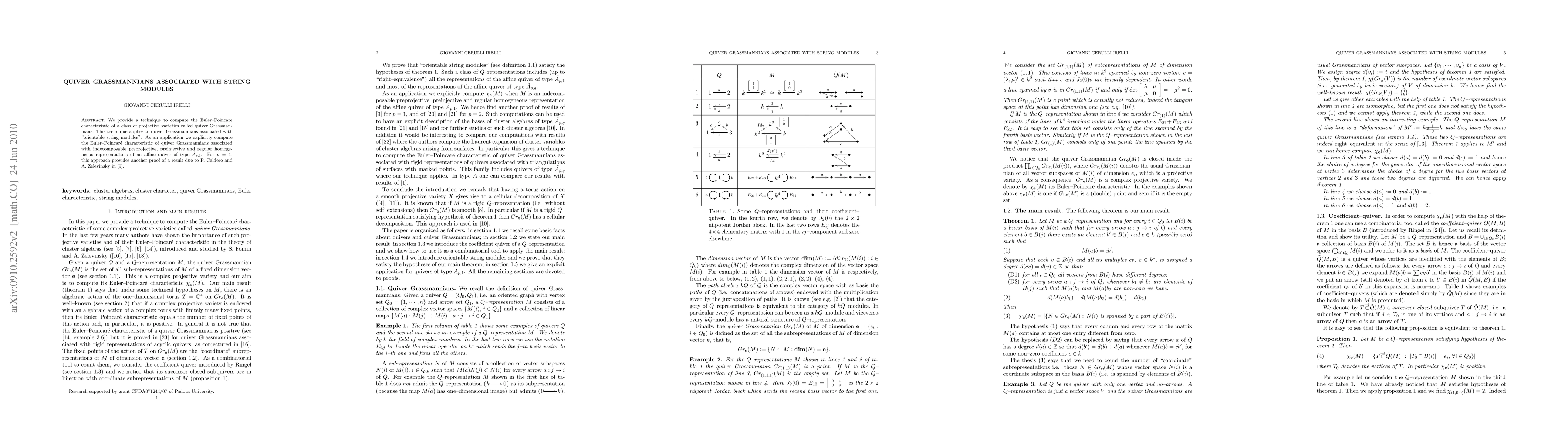 The paper presents a method to calculate the Euler characteristic for quiver Grassmannians linked to orientable string modules, applying it to specific affine quiver representations. This technique offers an alternative proof for a result previously established by Caldero and Zelevinsky for $p=1$.