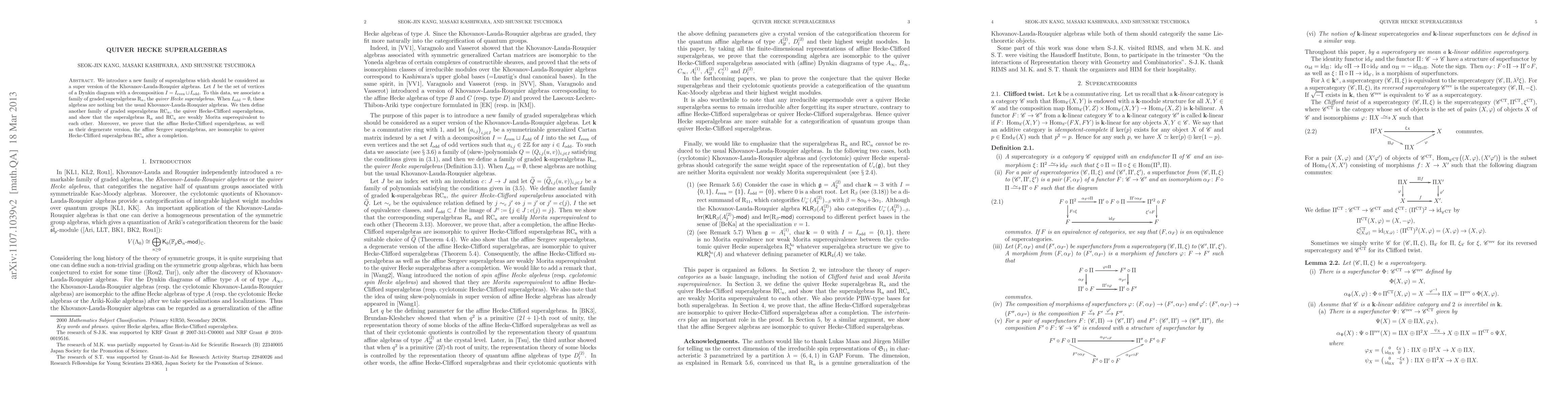 This paper introduces quiver Hecke superalgebras, a super version of Khovanov-Lauda-Rouquier algebras, and associates them with graded superalgebras linked to Dynkin diagrams. It also defines quiver Hecke-Clifford superalgebras, showing their Morita equivalence and isomorphism to affine Hecke-Clifford and Sergeev superalgebras.