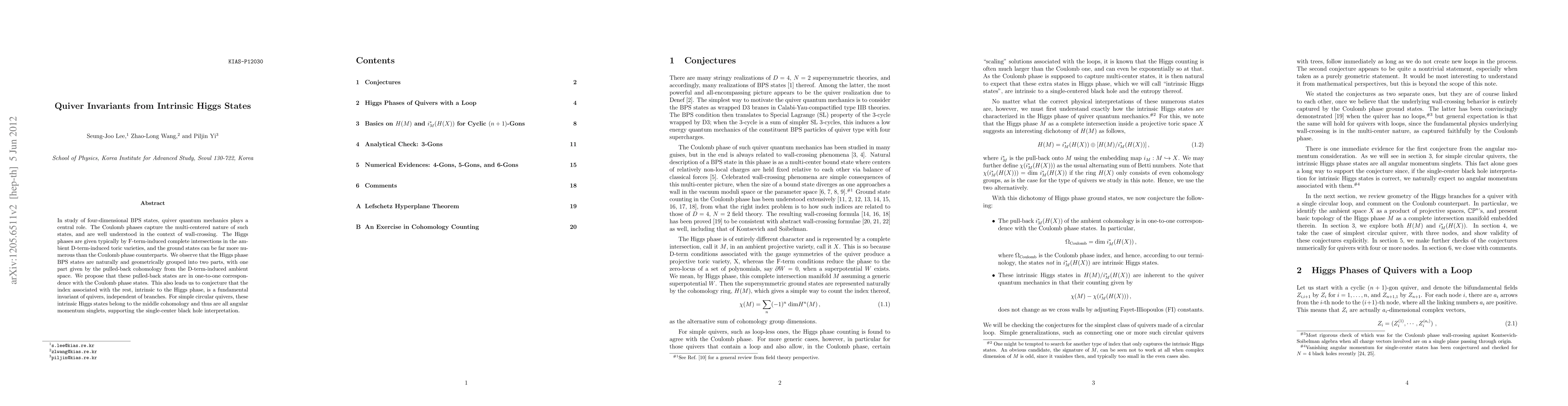In study of four-dimensional BPS states, quiver quantum mechanics plays a central role. The Coulomb phases capture the multi-centered nature of such states, and are well understood in the context of wall-crossing. The Higgs phases are given typically by F-term-induced complete intersections in the ambient D-term-induced toric varieties, and the ground states can be far more numerous than the Coulomb phase counterparts. We observe that the Higgs phase BPS states are naturally and geometrically grouped into two parts, with one part given by the pulled-back cohomology from the D-term-induced ambient space. We propose that these pulled-back states are in one-to-one correspondence with the Coulomb phase states. This also leads us to conjecture that the index associated with the rest, intrinsic to the Higgs phase,is a fundamental invariant of quivers, independent of branches. For simple circular quivers, these intrinsic Higgs states belong to the middle cohomology and thus are all angular momentum singlets, supporting the single-center black hole interpretation.
