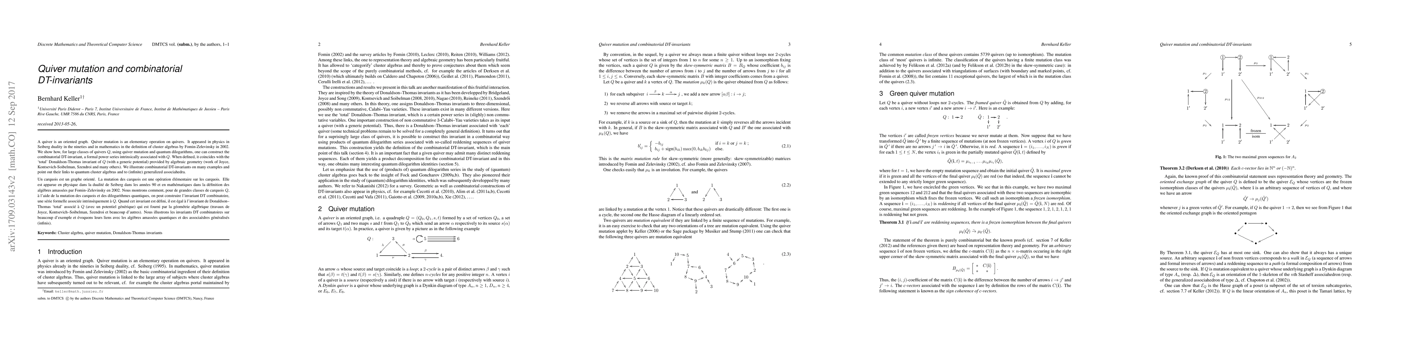 A quiver is an oriented graph. Quiver mutation is an elementary operation on quivers. It appeared in physics in Seiberg duality in the nineties and in mathematics in the definition of cluster algebras by Fomin-Zelevinsky in 2002. We show, for large classes of quivers Q, using quiver mutation and quantum dilogarithms, one can construct the combinatorial DT-invariant, a formal power series intrinsically associated with Q. When defined, it coincides with the "total" Donaldson-Thomas invariant of Q (with a generic potential) provided by algebraic geometry (work of Joyce, Kontsevich-Soibelman, Szendroi and many others). We illustrate combinatorial DT-invariants on many examples and point out their links to quantum cluster algebras and to (infinite) generalized associahedra.