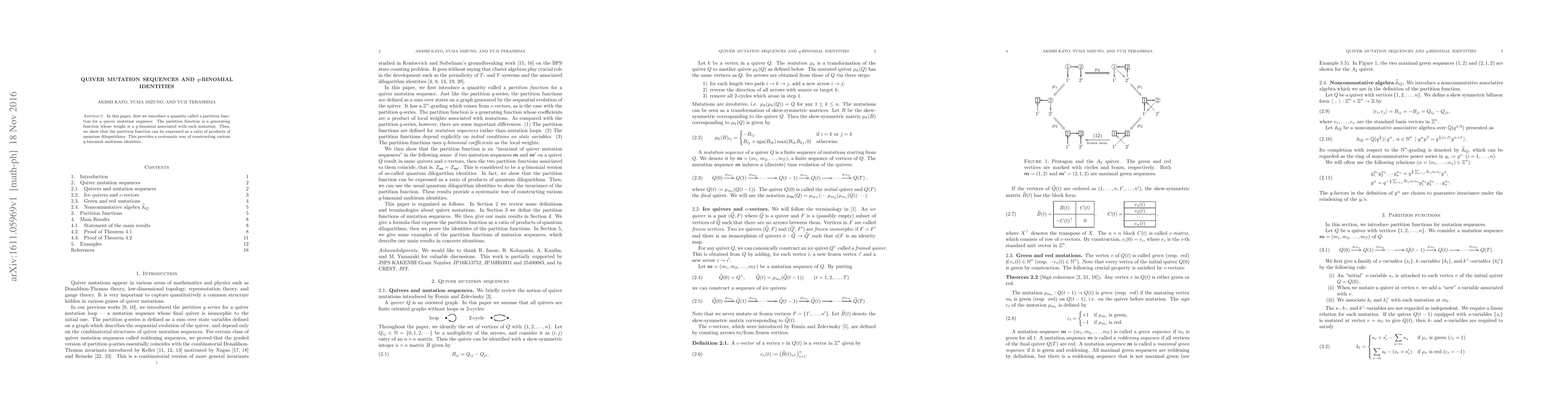 This paper introduces a partition function for quiver mutation sequences, where each mutation's weight is a $q$-binomial. It demonstrates that this partition function can be expressed as a ratio of quantum dilogarithm products, thereby providing a method for constructing $q$-binomial multisum identities.