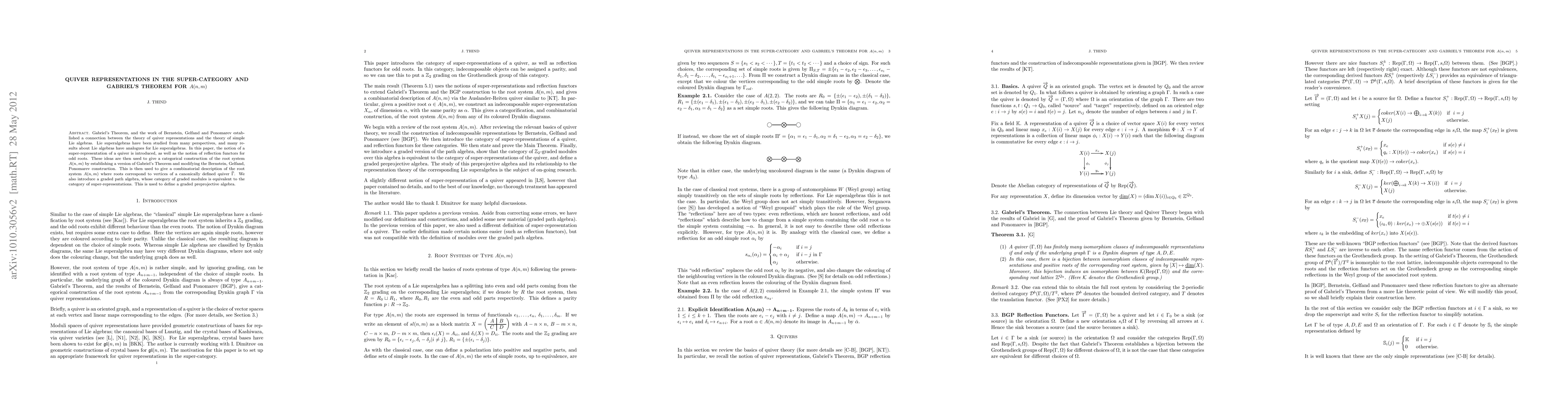 This paper introduces super-representations of quivers and reflection functors for odd roots, extending Gabriel's Theorem to the super-category. It provides a combinatorial construction of the root system A(n,m) using these concepts, where roots correspond to the vertices of a defined quiver.